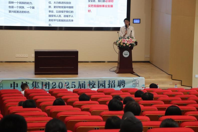 当天下午,中核集团于瀚林三号楼E111会议室及E区大厅举办了专场校园招聘宣讲会,宣讲会由中核集团宣讲代表张庆伟主持。中核集团战略规划总院档案馆刘立柱副馆长、中核集团战略规划总院人力资源部何宁宁招聘主管、学院副院长袁岑溪教授、学院党委刘李云副书记和多位教师代表出席。