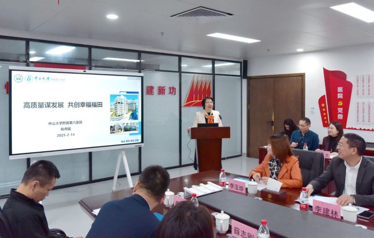 她要求:一是要进一步深化区校共建,推动韧性健康城区的建设。坚决贯彻落实新时代党的卫生健康工作方针,抢抓双区驱动、双区叠加、双改示范的重大历史机遇,实现快速发展。福田区坚持合作初心不改、奋斗目标不变,一如既往做好中大八院的坚强后盾。相关职能部门要在政策支持、资源统筹、人才保障各方面持续发力,全力推动和支持中大八院建设成为全国“百强医院”,进一步巩固和拓展区校共建内涵,打造区校共建卫生事业的典范,打造健康中国的福田样板。