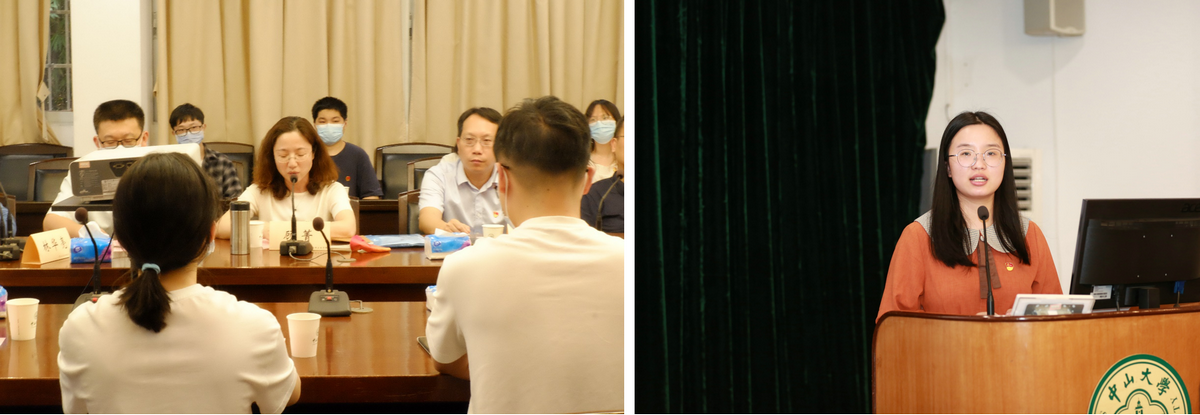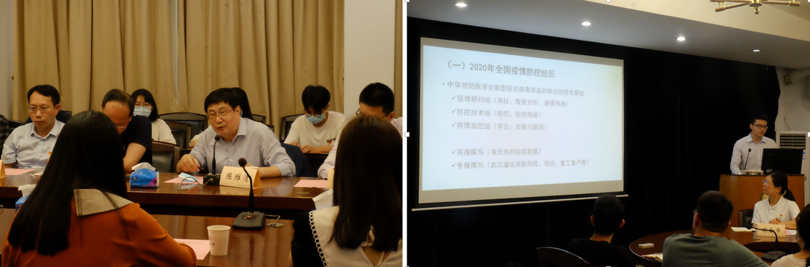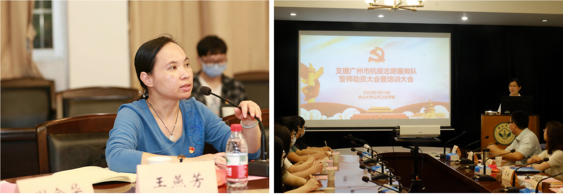 左图:党委副书记王燕芳同志主持会议;右图:团委书记谢金华老师介绍基本情况(来源:公共卫生学院)