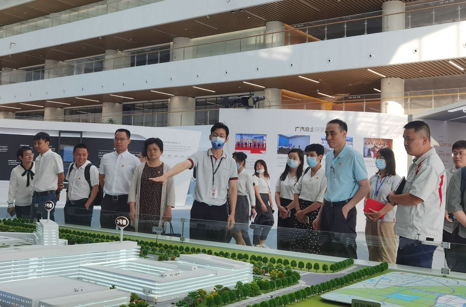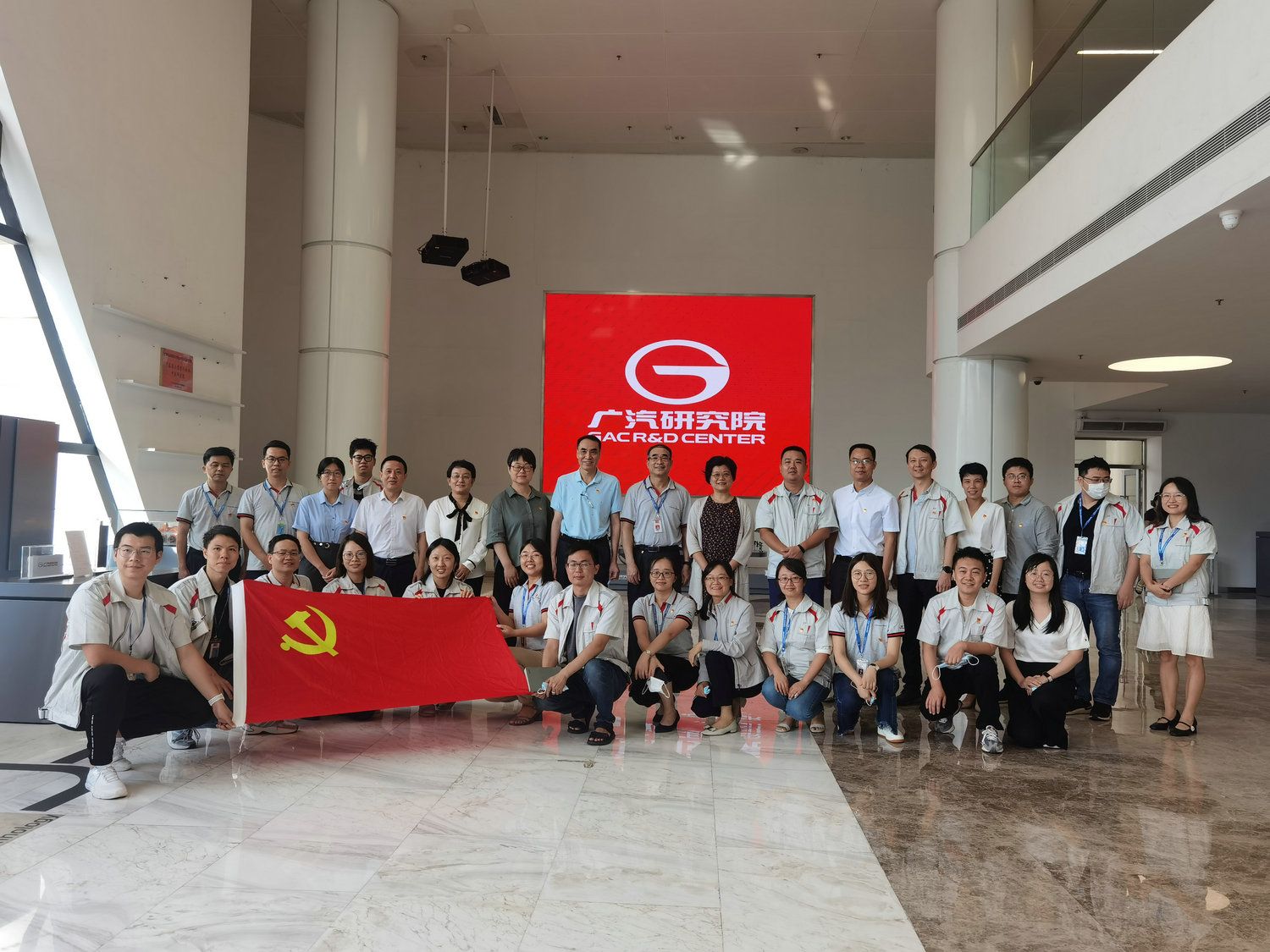 交流会后,双方人员参观了广汽研究院与汽车碰撞及安全相关的检测设备及实验室,还参观了广汽集团成立25周年科技成果展。参观过程中,双方人员不时地开展交流与互动。此次主题党日活动不仅加强了双方的了解,增进了双方的友谊,还将推动联合实验室的建设工作,将双方的合作水平提升到崭新的高度。