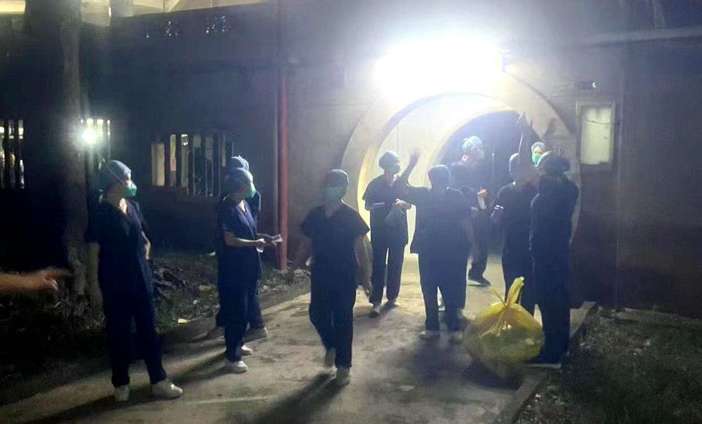 16日晚,南校园门诊部工作人员紧急集合出发开展核酸采样工作