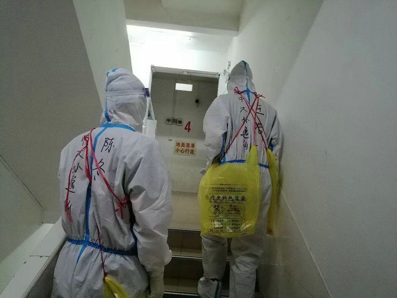 核酸采样小分队中两人一组负责“扫楼”