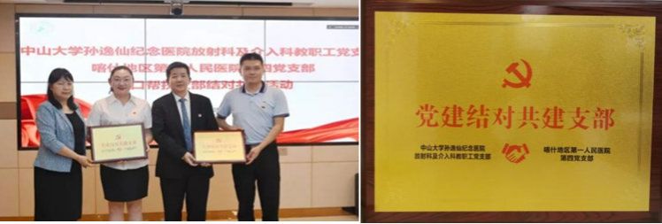 在帮扶迈入十年期之际,2022年7月,孙逸仙纪念医院放射科及介入科教职工党支部与喀地一院第四党支部正式结为党建结对共建支部。通过结合支部特长、专科特色,协同开展乳腺癌等方面疾病的影像学研究,精分细化“专病专治”,助力科室学科发展驶入快车道,进一步提升喀地一院人才培养和学科建设质效。