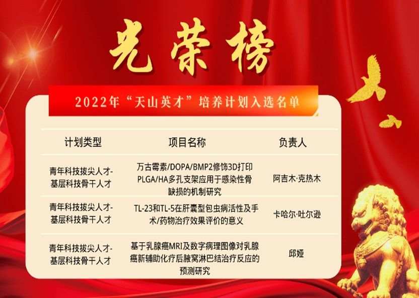 邱娅医生喜获新疆维吾尔自治区青年科技拔尖人才-基层科技骨干人才项目