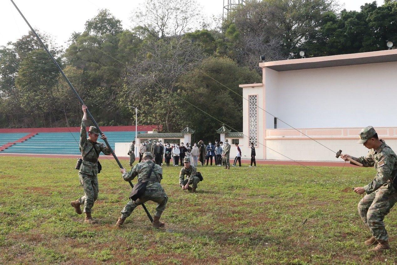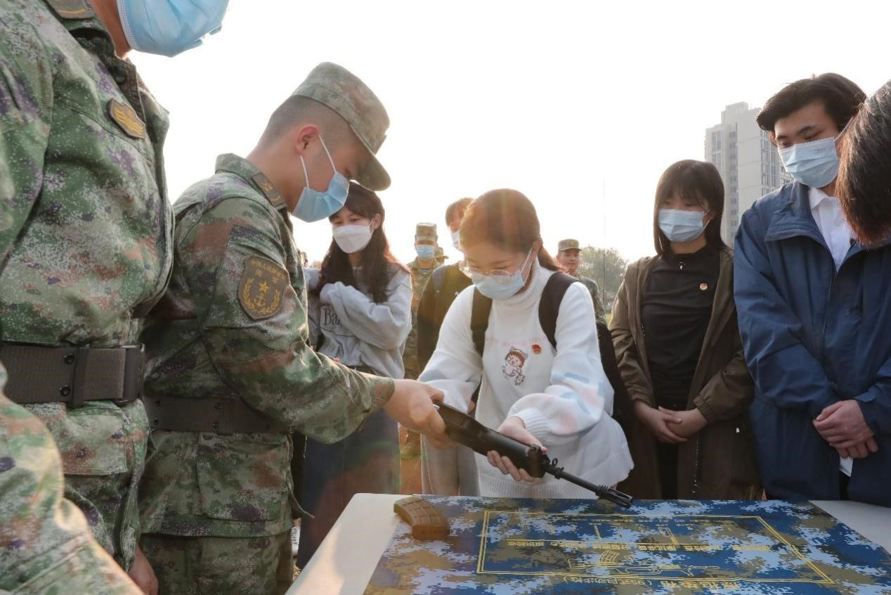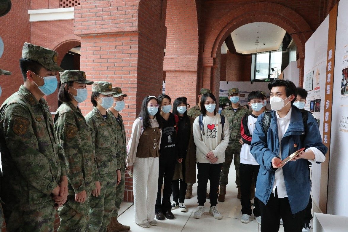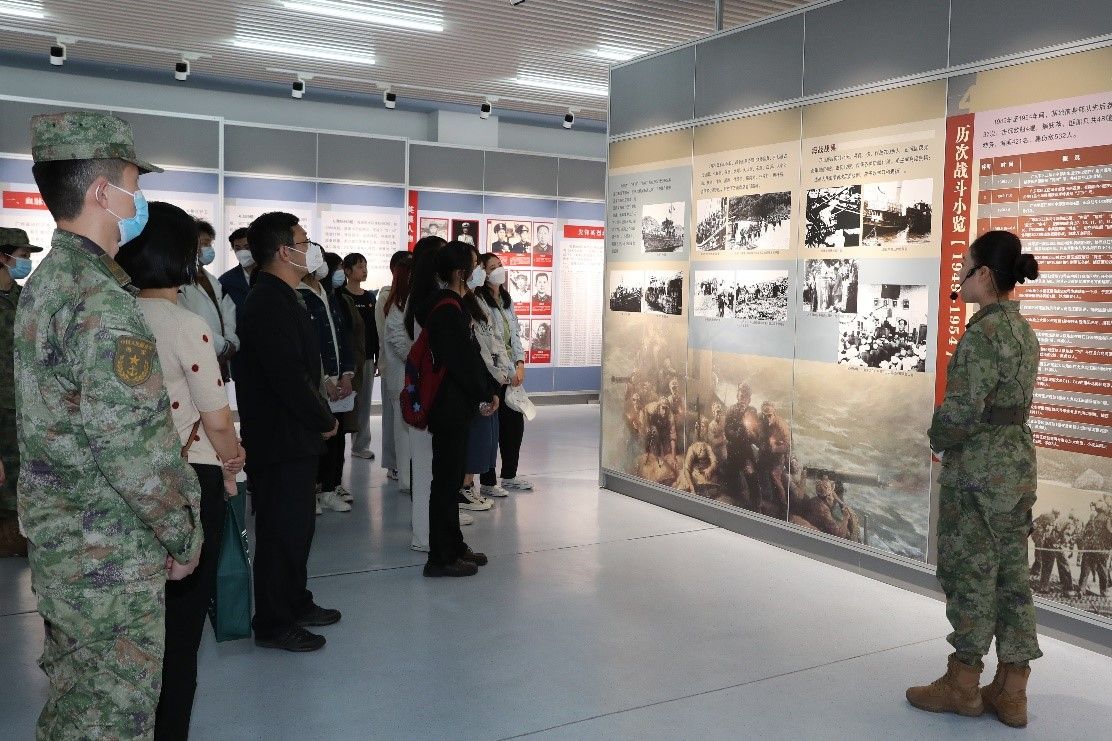 随后,大家共同出发前往海军某基地继续参观交流。学生联合党支部的党员和积极分子怀着激动的心情,参观了某基地战史馆,了解到中国海军从创立之初筚路蓝缕、披荆斩棘,到如今成为深蓝战士的辉煌而艰辛的历程,在场的同学们被海军中涌现出的一批批具有雷锋精神的战士而感动,被麦贤得的英勇战斗事迹深深打动。随后,师生前往操场观看学习战士们运送伤员、野外通联设备操作等军事训练演示。期间,同学们也纷纷积极参与互动。