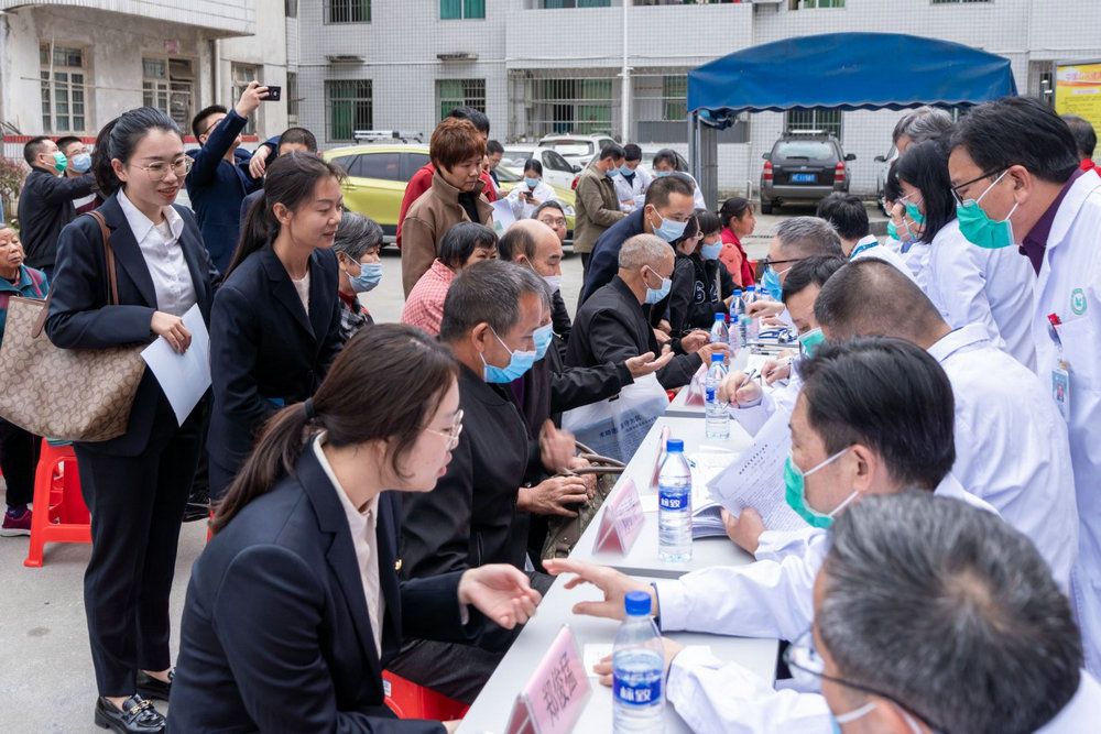 揭牌仪式和参观结束后,由孙逸仙纪念医院院长助理、神经科主任唐亚梅教授,肝胆外科主任陈亚进教授,乳腺肿瘤中心主任刘强教授,肾内科主任杨琼琼教授,心血管外科主任郑俊猛教授组成的专家团队和龙岩市第二医院专家团队来到古田中心卫生院开展义诊活动。中心卫生院门口人头攒动、但井然有序,前来就诊的群众排起了长龙。孙逸仙纪念医院专家们一边耐心解答市民的健康咨询,一边为他们进行问诊和诊断,优质的服务和精湛的医疗技术,让现场的群众为专家团竖起了“大拇指”。
