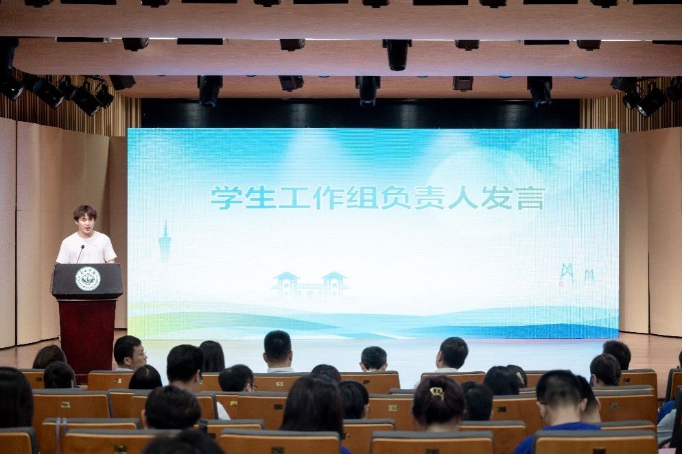 学生工作组负责人李恒康作工作总结,介绍赛事筹备期间学生工作组工作筹备情况,并分享工作经验感悟。志愿者学生代表张艺凰露分享志愿服务心得,介绍在本届“挑战杯“期间志愿服务经历,表达所见所闻所感,彰显中大学子志愿服务风貌。