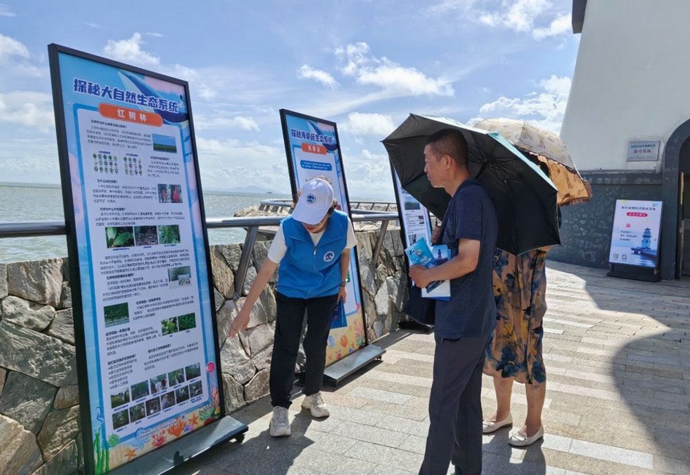 开幕式后组织干部群众赴淇澳-担杆岛保护区 “共植红树林”,用实际行动为“绿美珠海”建设添绿添彩。除主场活动外,珠海海洋观测科普教育基地同步对公众开放,专业工作人员为前来参观的市民讲解海洋灾害、海洋预警等方面有关知识,邀请参观群众近距离直接体验海浪、潮汐等海洋要素观测。