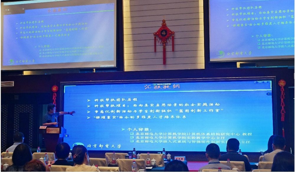 北京邮电大学戴志涛教授以“面向乡村振兴战略的实践育人模式探索与实践”为题,分享了北京邮电大学计算机学院学生团队为贵州省长顺县建立“智慧神泉”旅游导览系统的案例,介绍了学校立足信息科技力量优势,面向帮扶实践需求,将人才培养、创新活动和助力乡村振兴全面融合的经验做法。