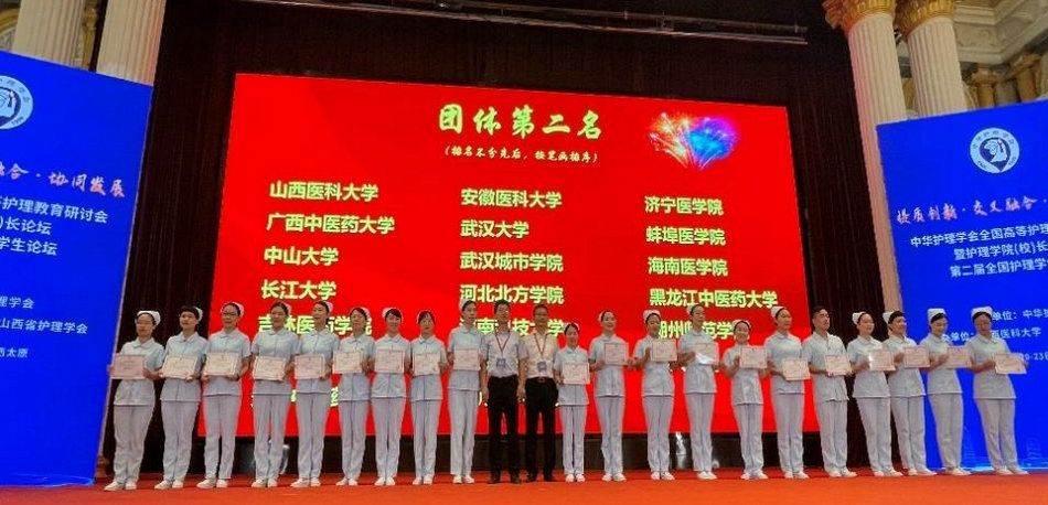 开云下注(中国)官网网讯(通讯员李颖)为进一步促进护理教师专业实践教学能力提升,中华护理学会高等护理教育专委会于8月20日至23日在山西太原召开全国高等护理教育研讨会暨护理学院(校)长论坛,同期举办2023年全国护理本科院校青年教师临床技能竞赛。来自全国85所护理本科院校的255名护理教师同场竞技。由我校护理学院副院长万丽红担任领队,护理学院李琨副教授、赵娟娟副教授和附属第一医院陈志昊护长组成的护理团队荣获全国护理本科院校青年教师临床技能竞赛团体第二名,陈志昊荣获单项操作(心肺复苏)个人奖第二名。