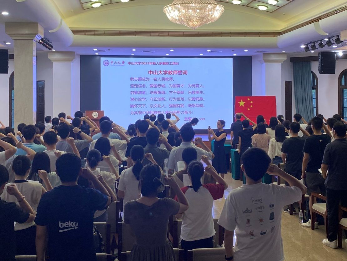 培训课程前,按照教育部、广东省教育厅的通知要求,新入职教职工开展“教师宣誓”活动。党委教师工作部部长马明辉带领全体新入职教职工面向国旗庄严宣誓,“我志愿成为一名教师。坚定信念,爱国赤诚……为实现中华民族伟大复兴而努力奋斗!”铿锵的宣誓声在会场中久久萦绕,“为党育人,为国育才”的坚定信念在新入职教职工心中落地生根。