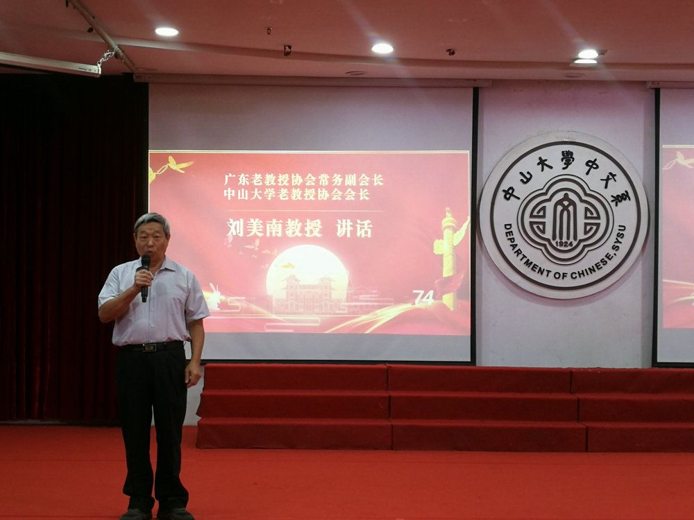 广东老教授协会常务副会长、开云下注(中国)官网老教授协会会长刘美南发表了热情洋溢的讲话,他表达了老同志们听党话、感党恩、跟党走的决心和意志,对台前幕后参与联欢会的同志们及中文系领导和师生们提供的帮助给予衷心感谢,祝大家中秋快乐,祝祖国繁荣昌盛。