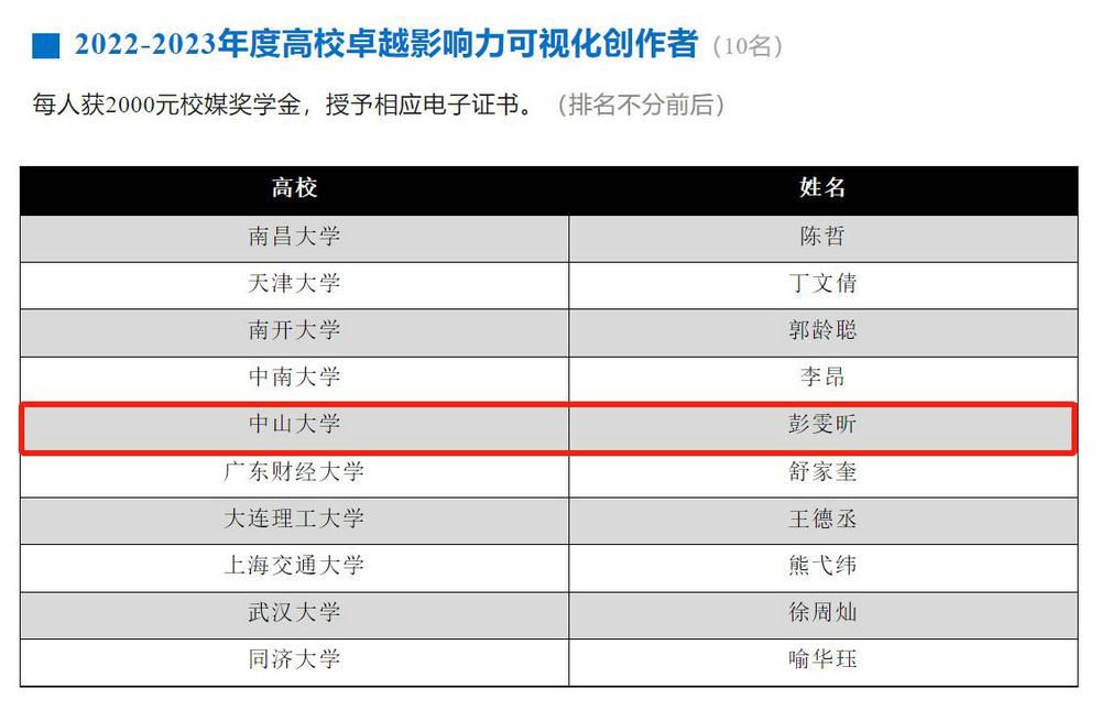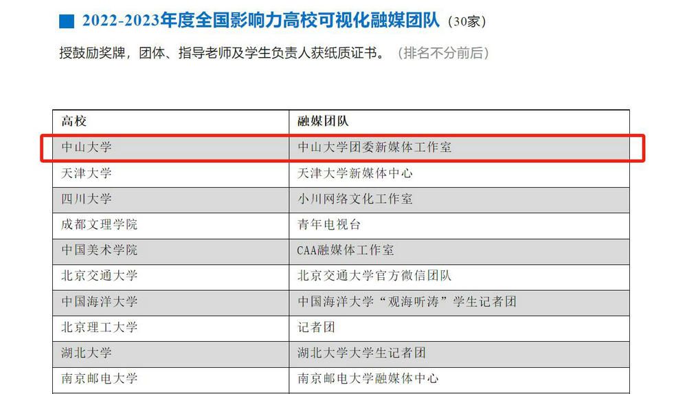 据悉,校园融媒体团队是高校里不可或缺的重要组成部分,担当通往大学生“最后一公里”的重要作用,承担着传递信息、发布资讯、反映学生声音等重要传播任务。为促进高校校园媒体交流,“寻找2022-2023年度高校可视化融媒体团队”和“寻找2022-2023年度高校可视化创作者”活动于2023年7月正式启动。活动评选出30家“2022-2023年度全国影响力高校可视化融媒团队”和10名“2022-2023年度高校卓越影响力可视化创作者”。
