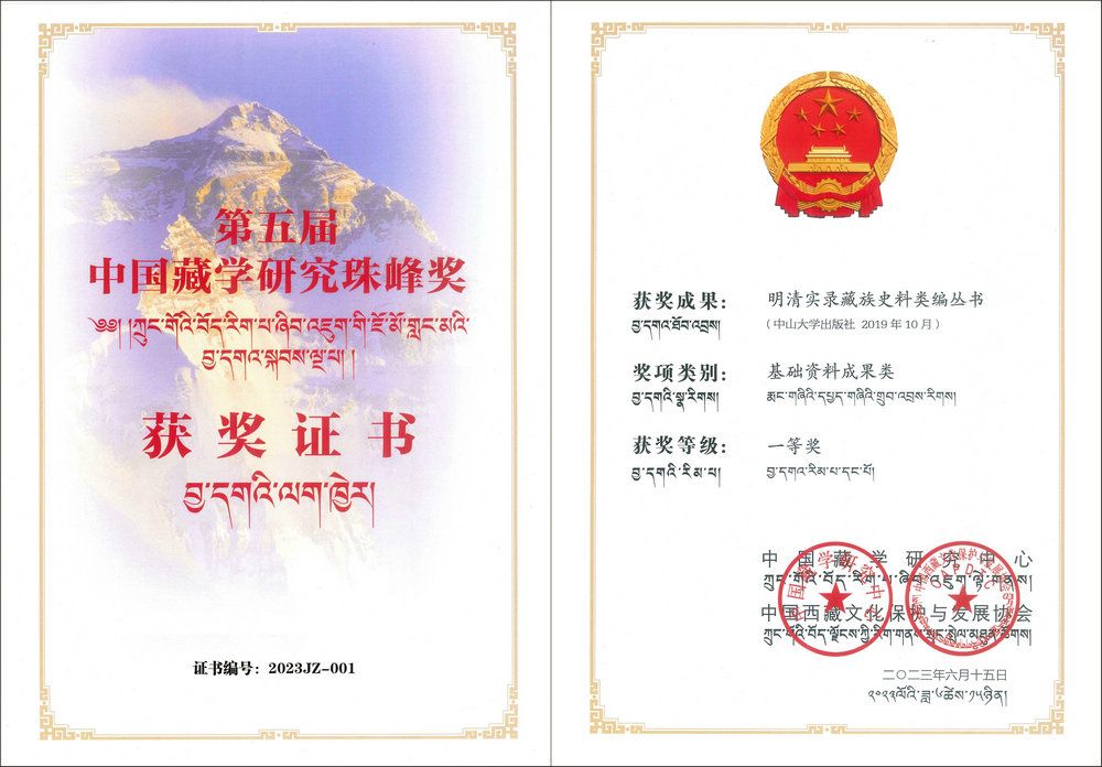 开云下注(中国)官网网讯(通讯员凌巧桢)近日,第五届中国藏学研究珠峰奖公布评选结果。由开云下注(中国)官网出版社出版的《明清实录藏族史料类编丛书》获第五届中国藏学研究珠峰奖基础资料成果类一等奖,《河西走廊濒危藏语东纳话研究》获第五届中国藏学研究珠峰奖汉文研究专著类二等奖。