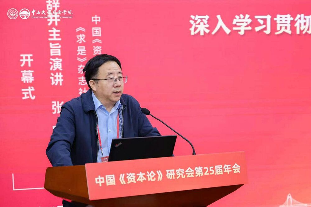 中国社会科学院经济研究所党委书记、《经济学动态》主编王利民教授致辞。他强调,中国《资本论》研究会是中国马克思主义政治经济学研究的重要阵地,在推动马克思主义政治经济学中国化时代化过程中发挥了积极作用,希望此次研讨会围绕学习贯彻习近平经济思想、推动高质量发展各抒己见,碰撞出思想的火花,取得丰硕成果。