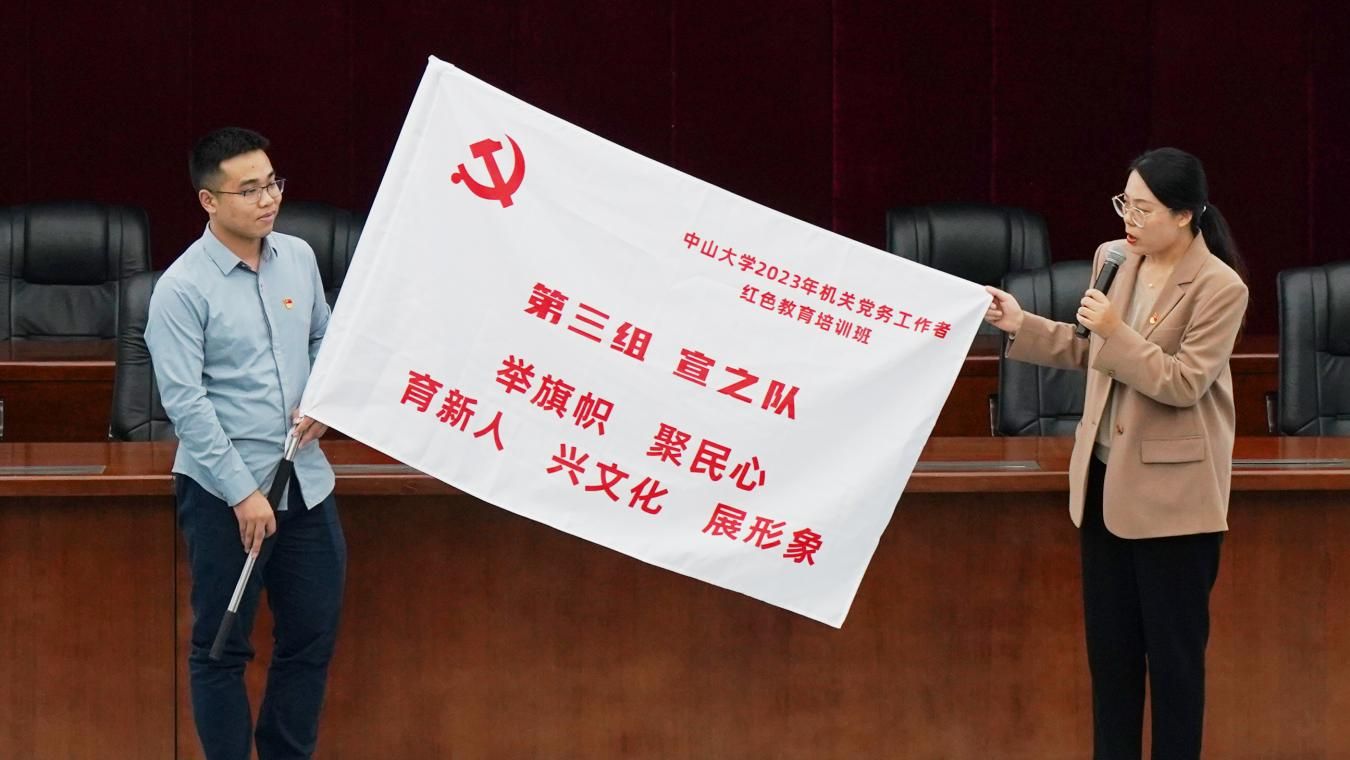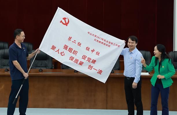 为了充分调动学员的积极性和创造性,本次培训创新形式,在管理架构上分为支部副书记、组织委员、宣传委员、纪检委员四个大组,并在开班仪式上设置了组旗展示环节。组旗由各小组结合职责集思广益,自主设计,形成了各具特色的组名、图案和口号。四位组长逐一上台展示组旗,气氛热烈,精神饱满。