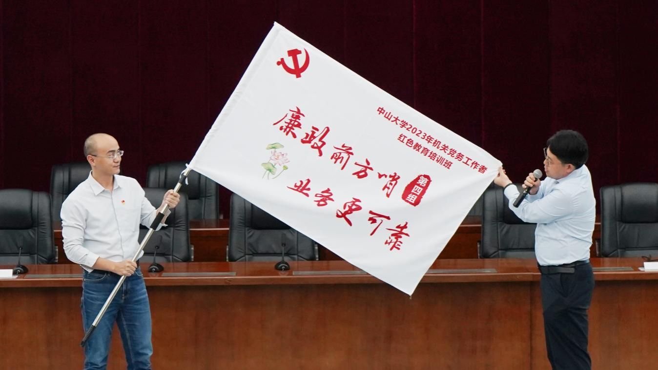 培训班班长曲翔代表班级接旗