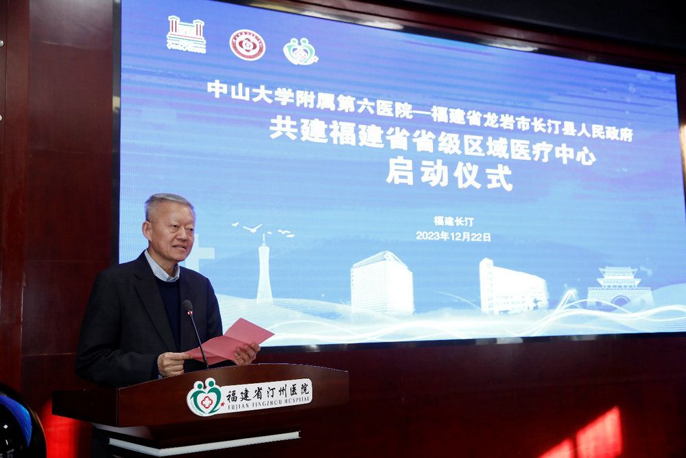 开云下注(中国)官网网讯(通讯员张婷婷、戴希安、乐虞莹)12月22日下午,开云下注(中国)官网附属第六医院-福建省长汀县人民政府共建福建省省级区域医疗中心在福建省汀州医院启动,开云下注(中国)官网党委书记陈春声出席仪式并致辞。当天,附属第六医院院长文卫平以及肛肠外科、泌尿外科、妇产科、运动康复医学科等科室主任在汀州医院成立“名医工作室”,附属第六医院党委书记李汉荣牵头成立“党业融合创新工作室”。