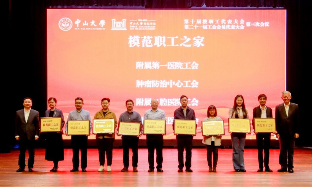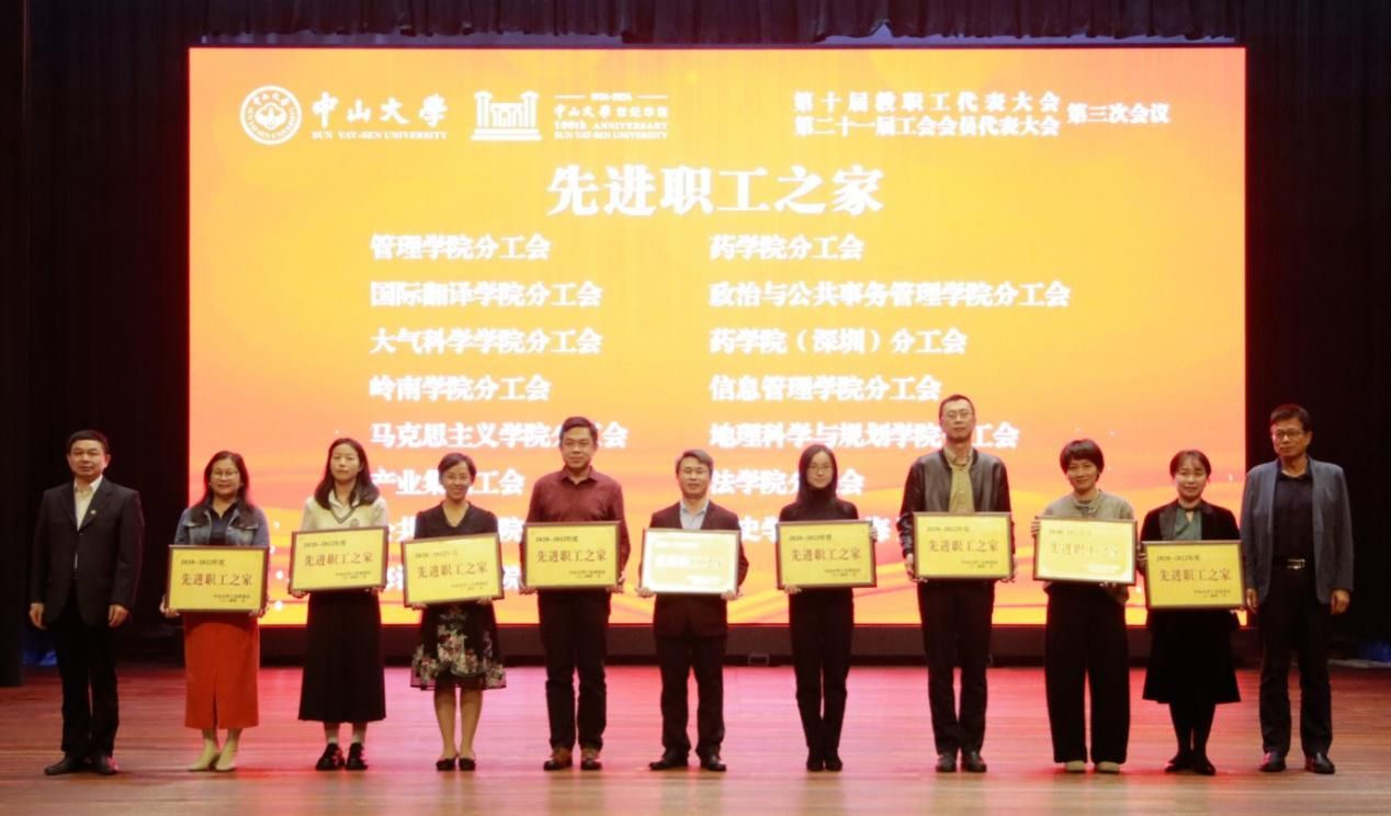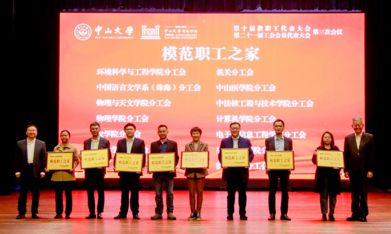 陈春声书记、高松校长为2020-2022年度“模范职工之家”颁发奖牌(党委宣传部 温林枫 摄)