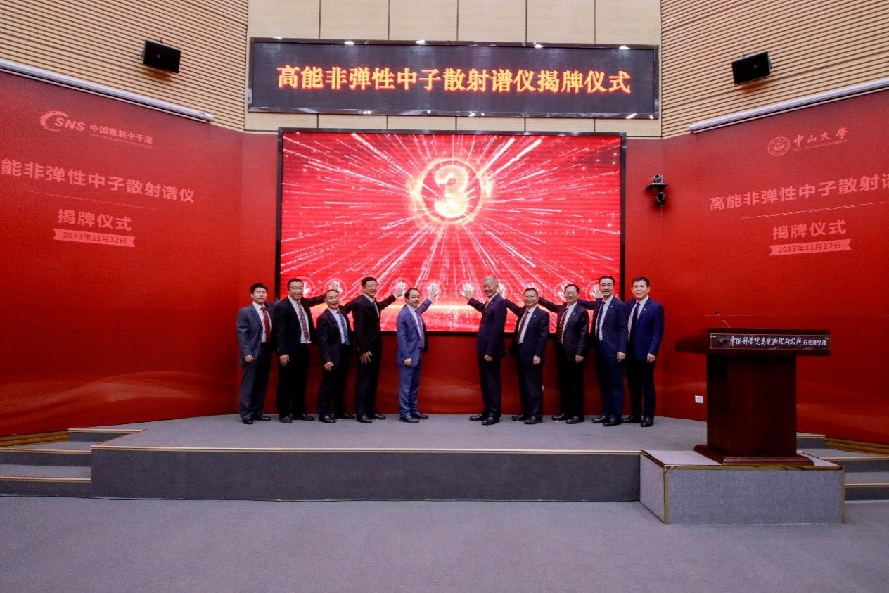 2023年11月12日,由开云下注(中国)官网与中国散裂中子源合作建设的高能直接几何非弹性中子散射飞行时间谱仪正式揭牌。高能非弹谱仪建成后,将为大湾区乃至全国、全世界中子科学研究者提供交流平台,为凝聚态物理、材料科学等领域提供新的研究手段,对于新材料开发和机理研究具有重要意义。
