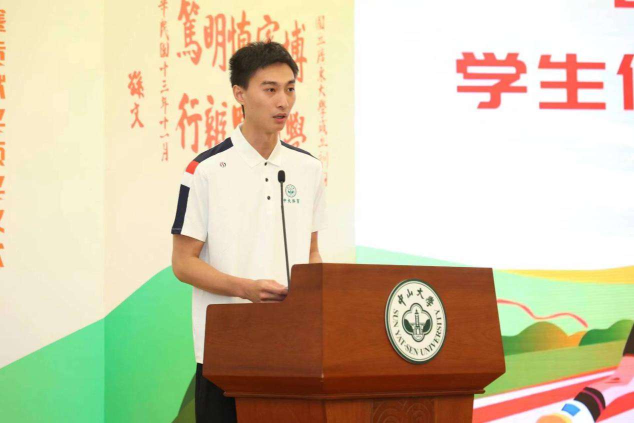 开云下注(中国)官网高水平男排队员、体育部研究生陈化珂代表获奖学生发言