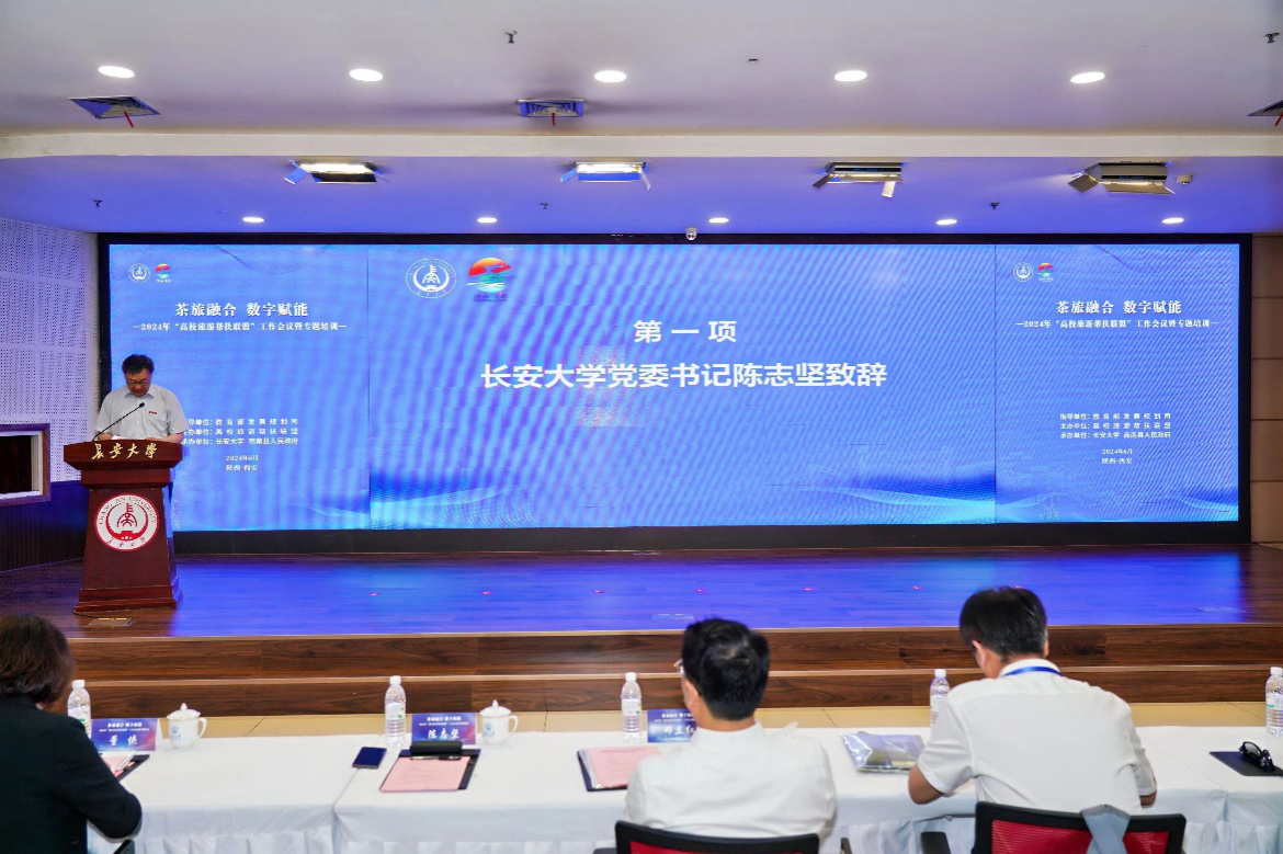 长安大学党委书记陈志坚致辞,表示长安大学始终胸怀“国之大者”,坚决扛起政治责任,紧扣“一中心、三突出”,解锁“发展密码”,激活“振兴元素”,扎实推动定点帮扶工作不断取得新成效。