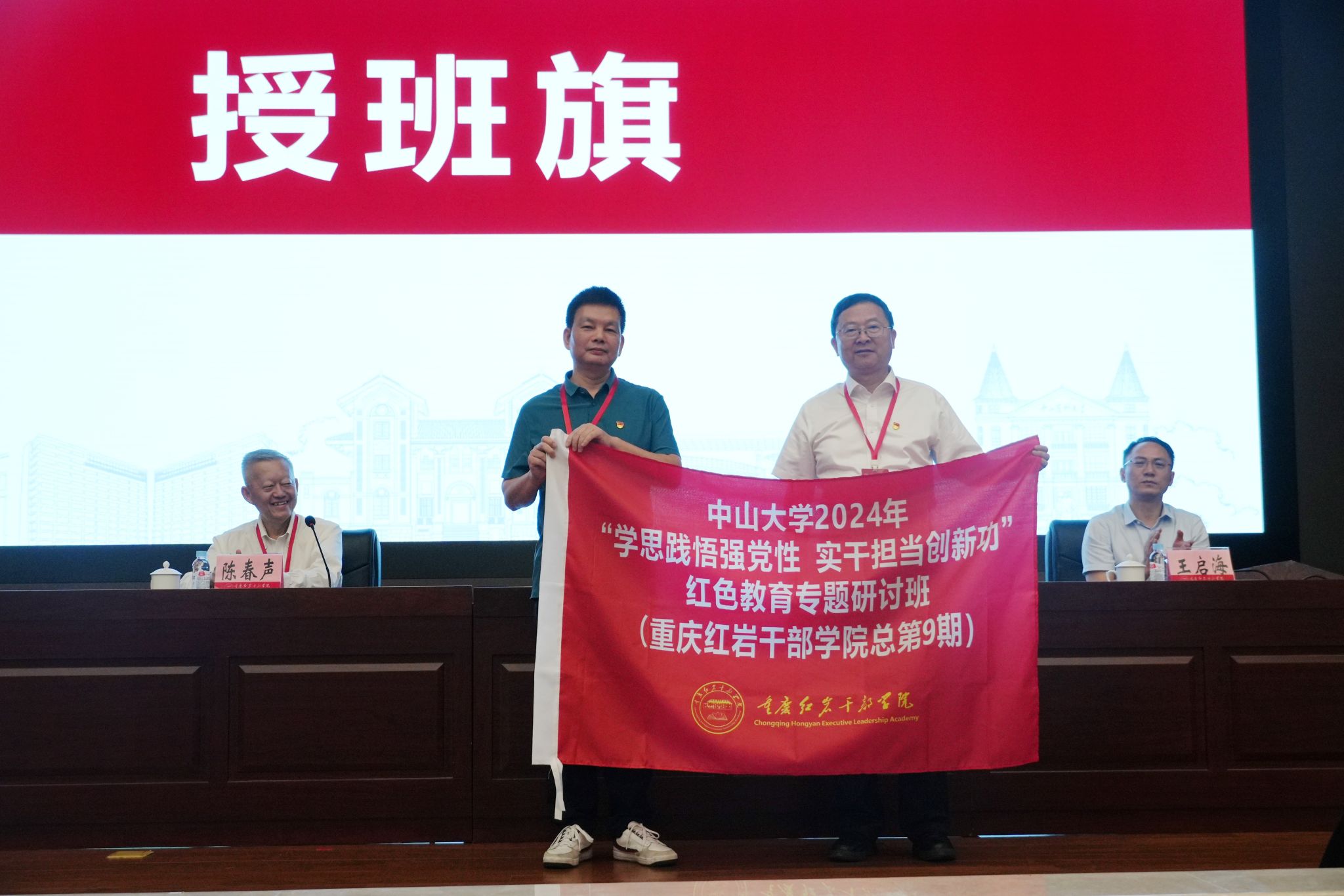 高松校长(右)为培训班授班旗