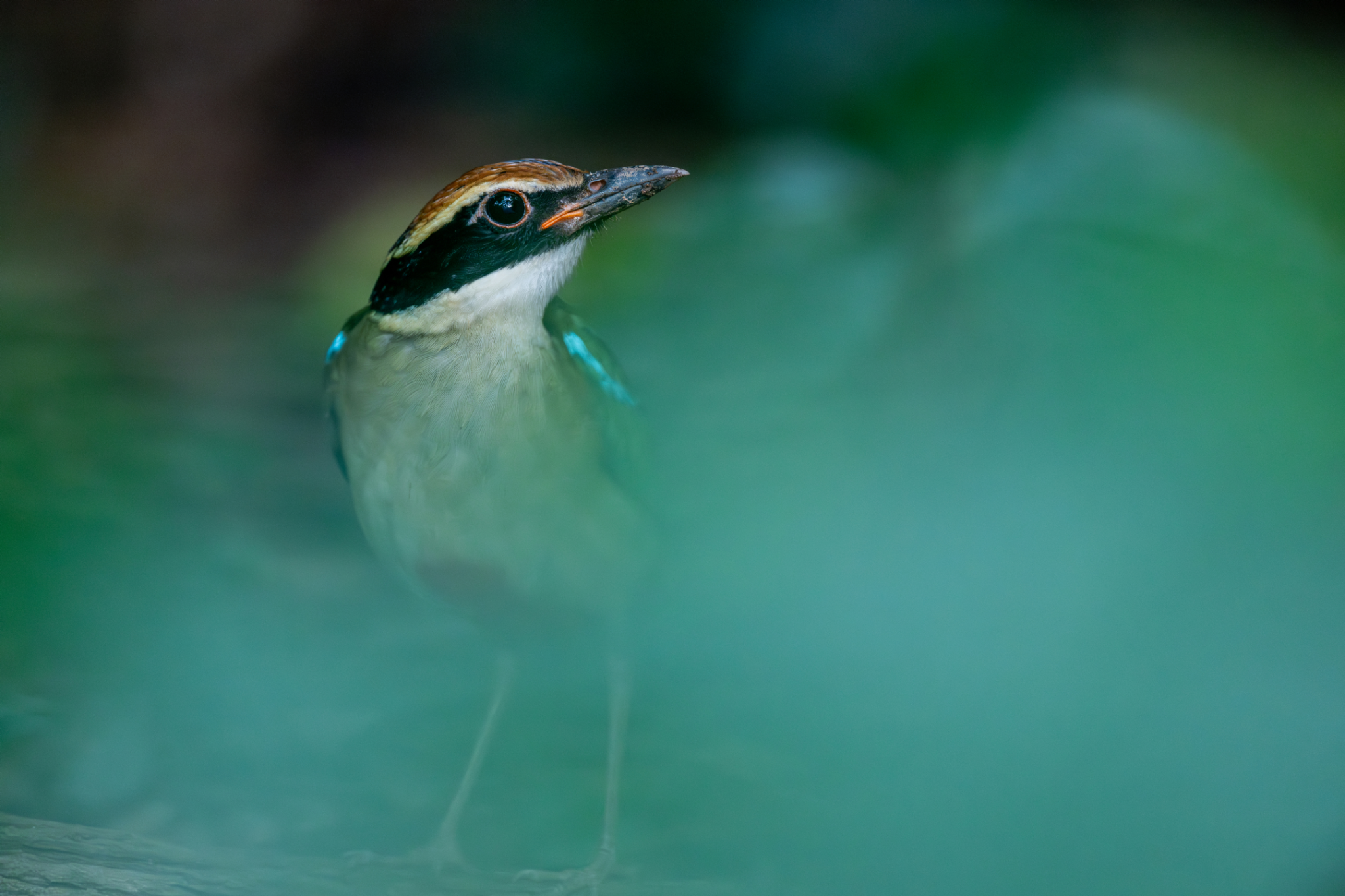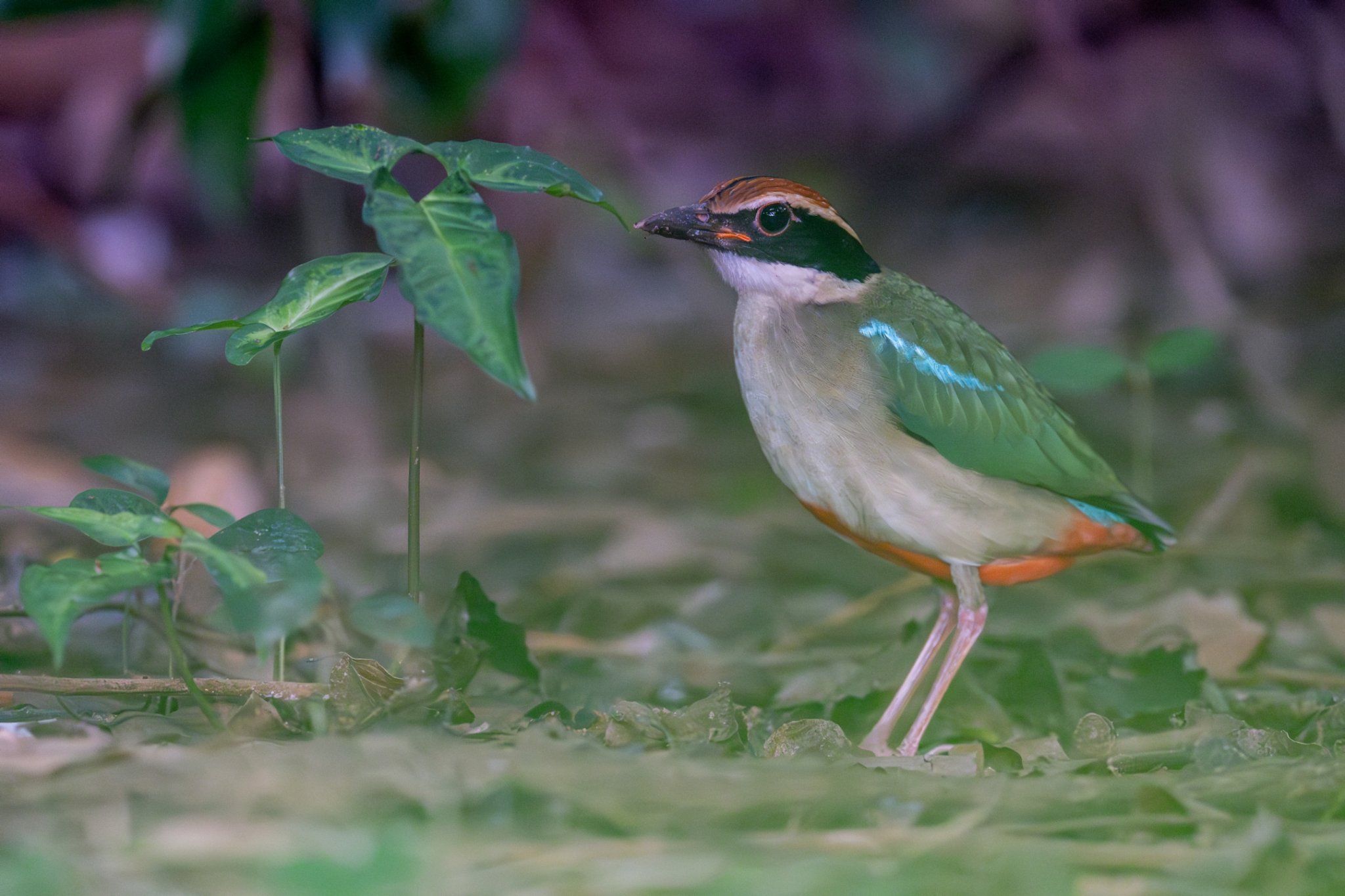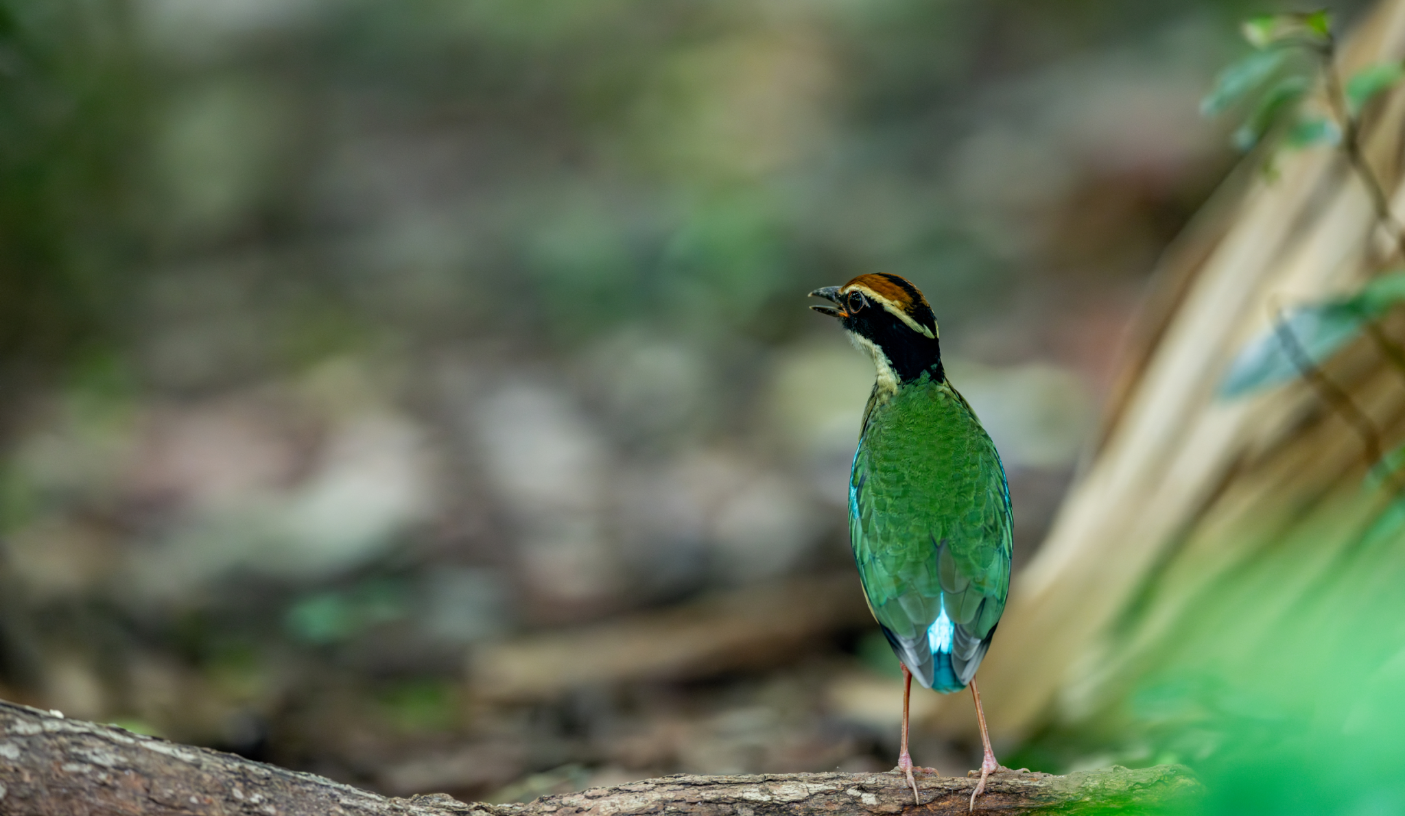 仙八色鸫(学名:Pitta nympha),雀形目八色鸫科八色鸫属鸟类,因栖息地破坏和人类干扰,仙八色鸫在全球范围内数量稀少,处于易危状态,国家二级保护动物。棕色头冠、黑色眼纹和颊部、土黄色眉纹、白色喉部、淡黄色胸腹、亮蓝色腰尾、湖绿色肩背和翅膀、艳红色尾下覆羽,美丽不可方物,号称林下绿钻,尤为罕见。