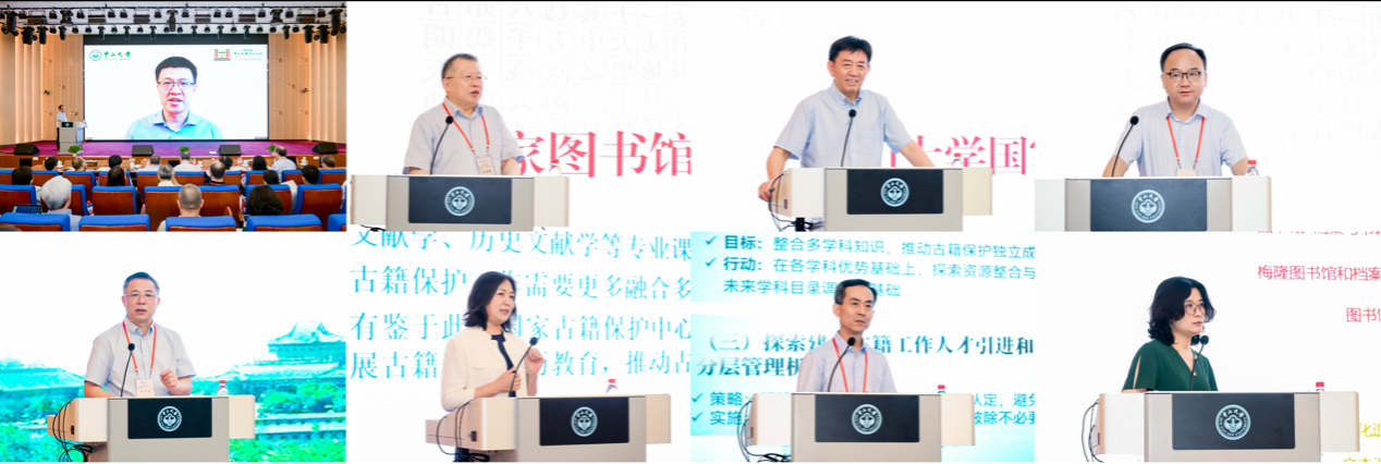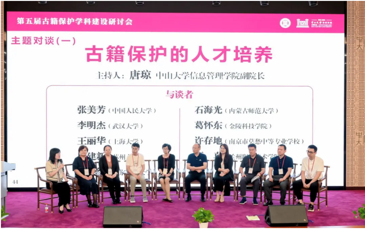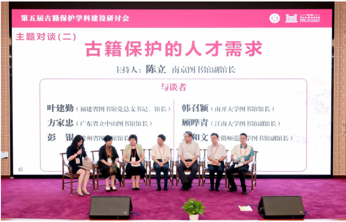 与国家古籍保护中心开展古籍保护高层次人才培养合作的院校代表分别就各校“古籍保护人才培养方案设计”进行分享。在主题对谈环节,来自相关人才培养单位和古籍收藏重点单位的专家代表围绕古籍保护人才培养的现状、挑战、未来发展趋势,以及图书馆古籍保护人才需求现状进行了热烈讨论。