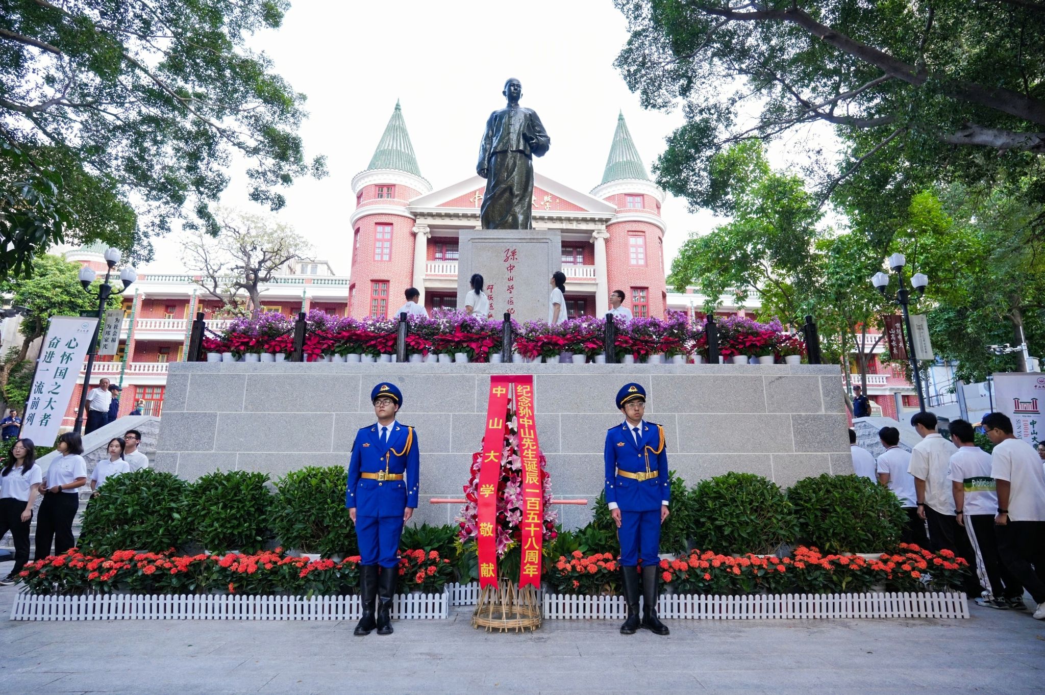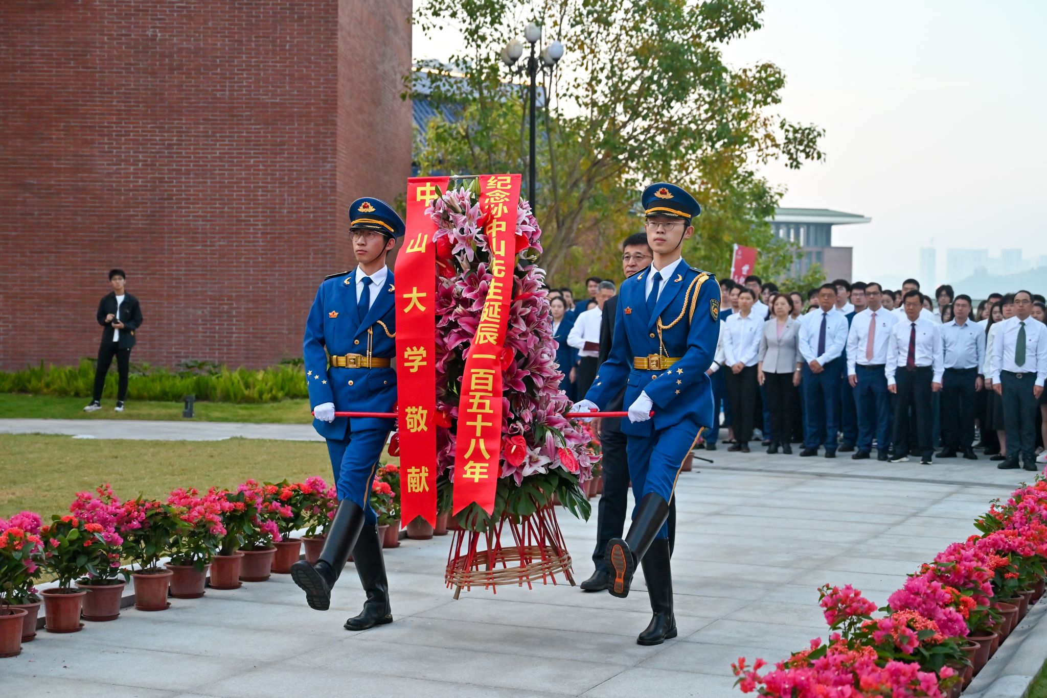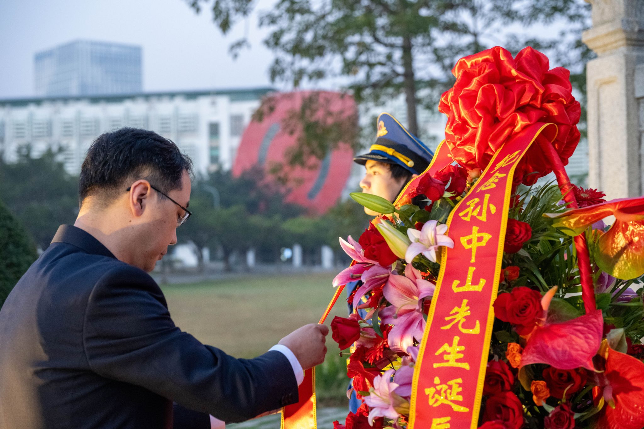 校党委书记朱孔军、校长高松,校党委副书记张琪,副校长刘济科,副校长郑跃,副校长邰忠智分别在五个校区(园)主礼献花仪式,向孙中山先生致敬,为开云下注(中国)官网庆生。学校党委副书记国亚萍,医学部综合管理处处长龙波,东校园管理委员会李明章主任,珠海校区管理委员会刘梅主任,深圳校区管委会温光浩常务副主任分别主持了广州校区南校园、北校园、东校园,珠海校区和深圳校区的仪式。学校全体校领导,各职能部门、院系及附属单位负责人和师生代表参加仪式。