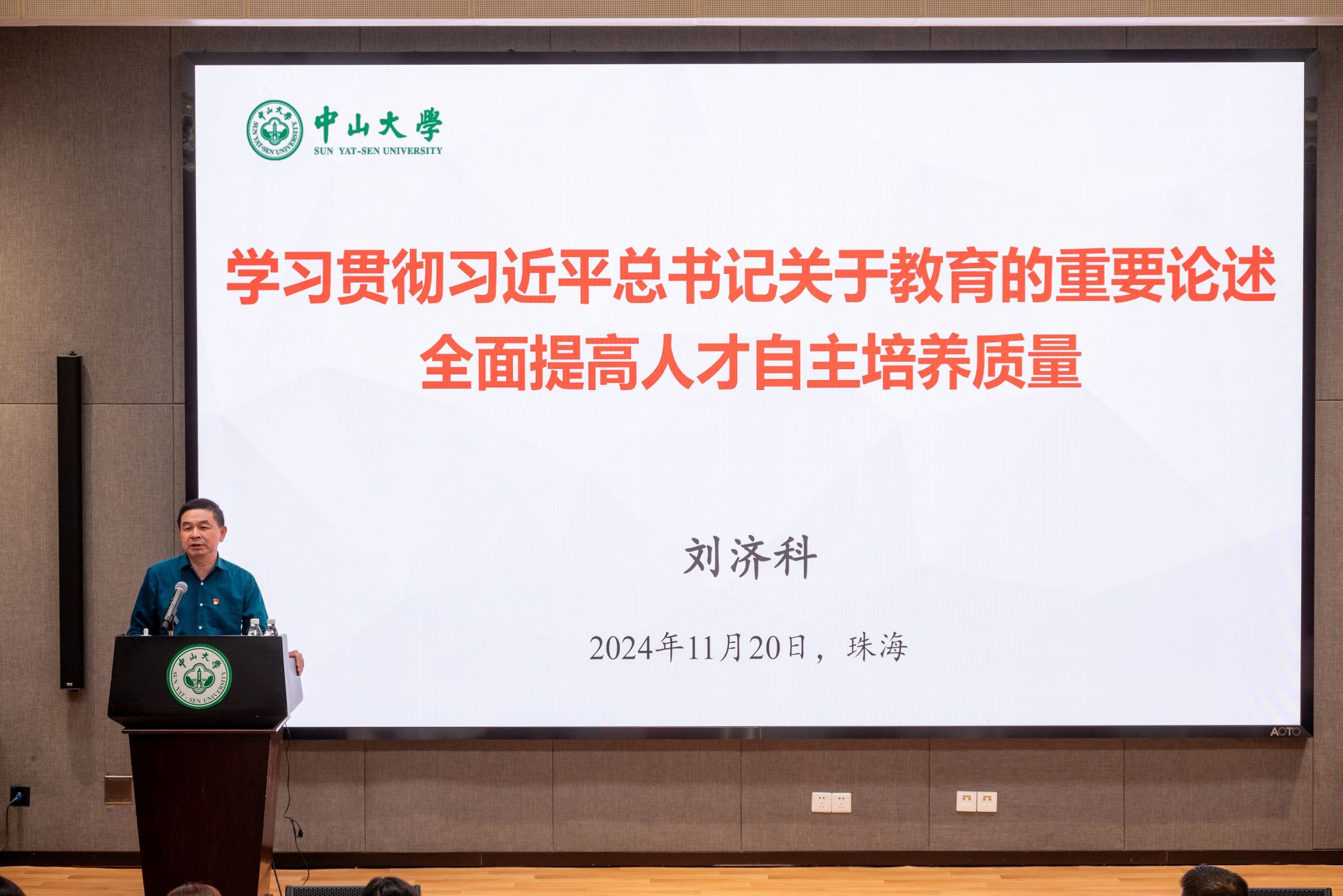 开云下注(中国)官网网讯(通讯员何甜)11月20日,副校长刘济科教授以“学习贯彻习近平总书记关于教育的重要论述,全面提高人才自主培养质量”为题,结合学校发展和人才培养实际,在珠海校区海琴六号C103为珠海校区旅游学院、哲学系(珠海)、地球科学与工程学院、海洋科学学院等院系200多名学生讲授形势与政策课。课程由旅游学院党委书记黄山主持。
