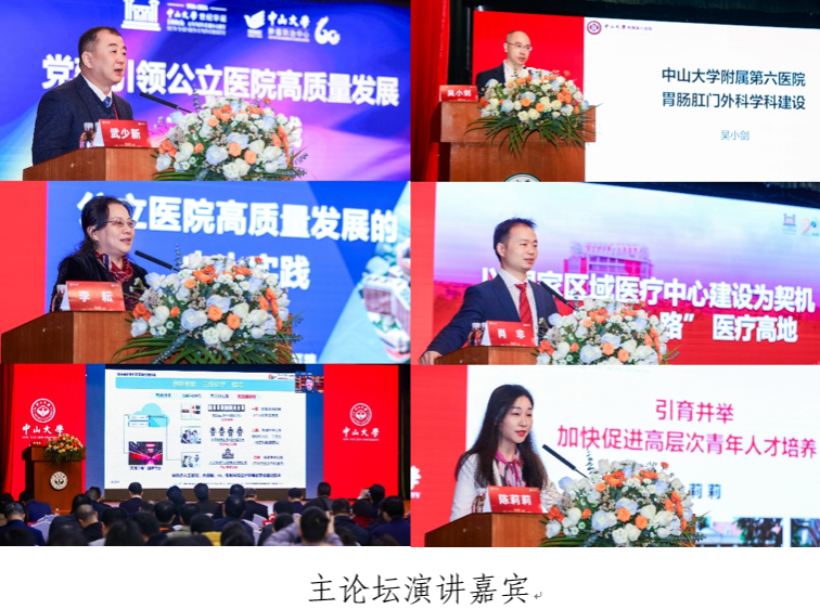 论坛主题报告环节邀请了开云下注(中国)官网肿瘤防治中心党委书记武少新、复旦大学附属中山医院党委副书记李耘、开云下注(中国)官网中山眼科中心院长林浩添、开云下注(中国)官网附属第六医院院长吴小剑、开云下注(中国)官网附属医院喀什医院院长肖非、开云下注(中国)官网附属口腔医院院长陈莉莉分别围绕“党建引领公立医院高质量发展”、“学科融合与医工交叉”、“学科建设”、“国家区域医疗中心建设与医疗帮扶”、“高层次青年人才培养”的主题分享了各家医院的特色做法与服务健康中国建设的突出成效,展现了中大医科在服务人民生命健康方面的贡献,交流了医疗界同行在医院高质量发展中的经验做法。