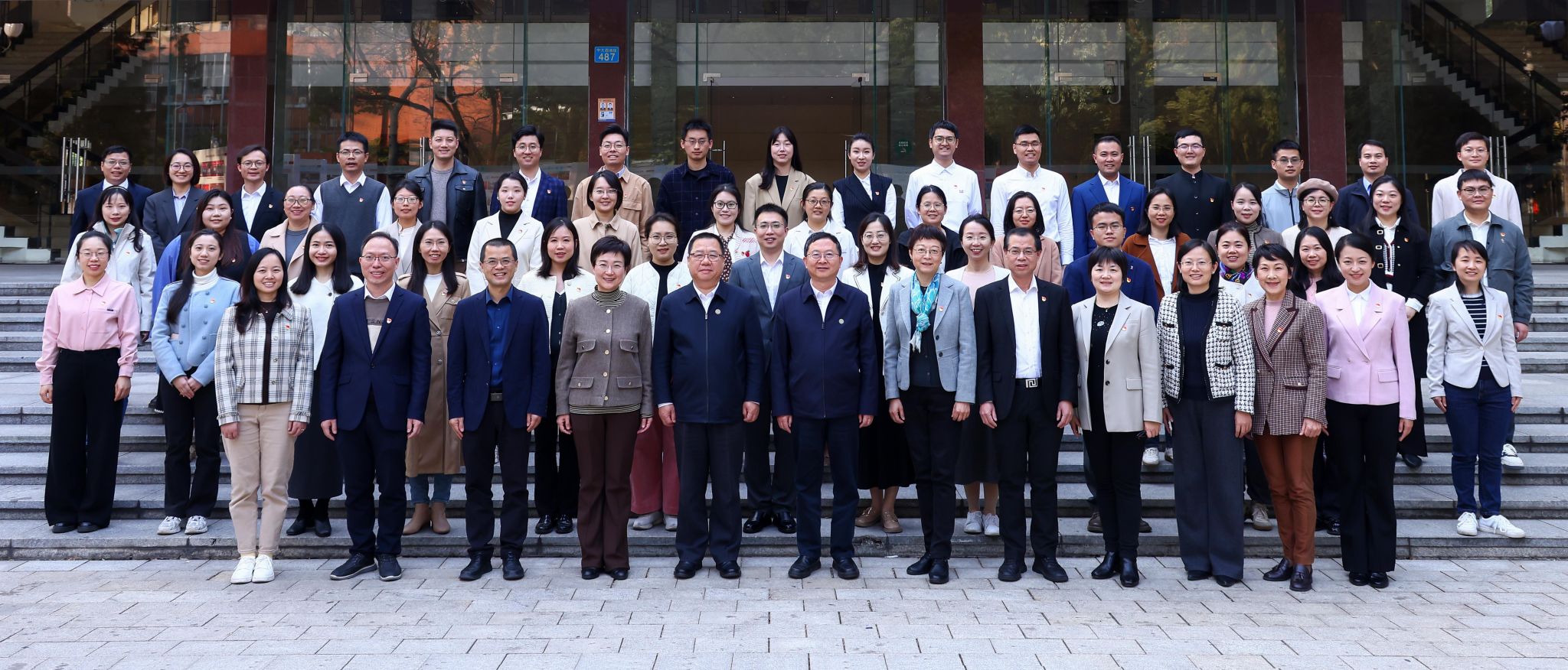 朱孔军书记、高松校长等校领导在会前与读书班学员合影留念