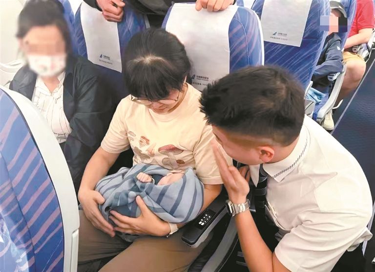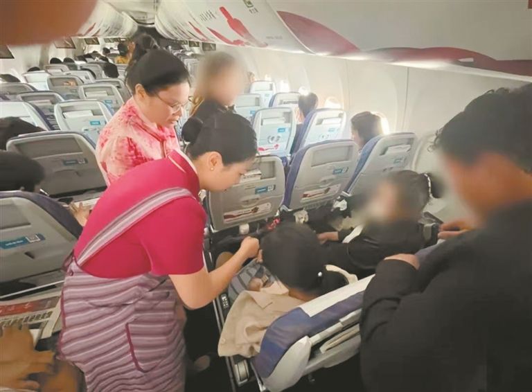 “孩子在严重的基础疾病上叠加了进食严重不足,目前处于明显的脱水状态,若不及时干预,将难以支撑余下的五小时航程!”因为飞机上医疗条件有限,所以无法像在医院里一样插胃管和建立静脉通道补液,梁崎当机立断让患儿经口补水。蔡霞指导机组人员调配好适当浓度的糖水,装入奶瓶,梁崎抱着患儿,小心又精准地把糖水一滴滴地滴入患儿口腔一侧,及时补充水分并经过医护们全程细心关照后,患儿黏膜逐渐湿润,渐渐安静放松下来。随后,飞机安全抵达广州,此时患儿生命体征已经趋于稳定,顺利转入医院接受后续治疗。
