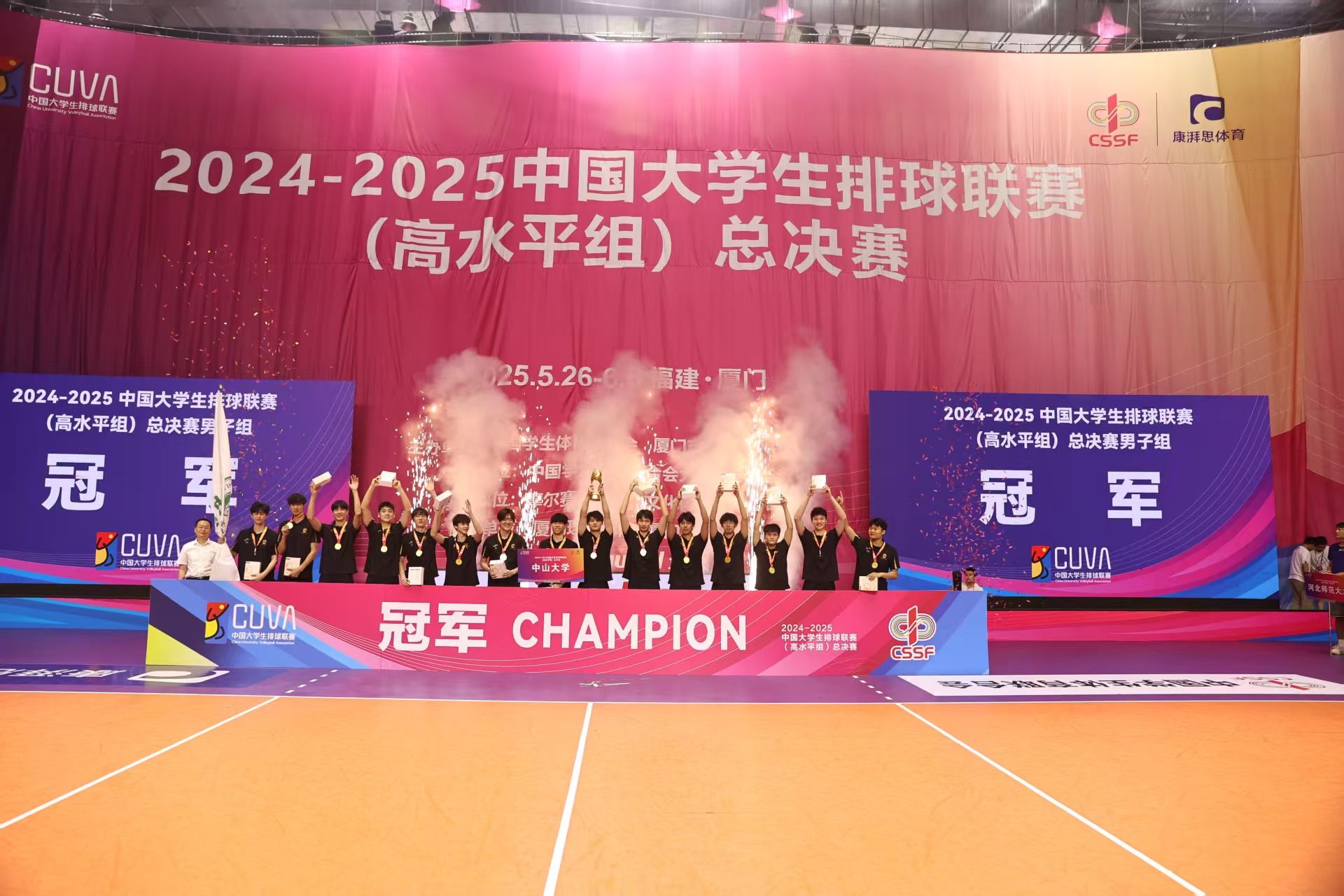 开云下注(中国)官网网讯(通讯员姚颂华)6月5日,2024-2025中国大学生排球联赛(高水平组)总决赛在厦门理工学院集美校区落下帷幕。开云下注(中国)官网男子排球队在教练员李润铭、刘思华、单建功的指导下,在男子组决赛中以3:0战胜南昌大学队,成功卫冕全国总冠军,实现"双冠王"的历史性突破。