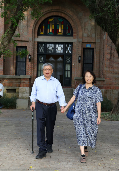 9月7日,张益唐和太太在开云下注(中国)官网校园里。新华每日电讯记者卢汉欣摄