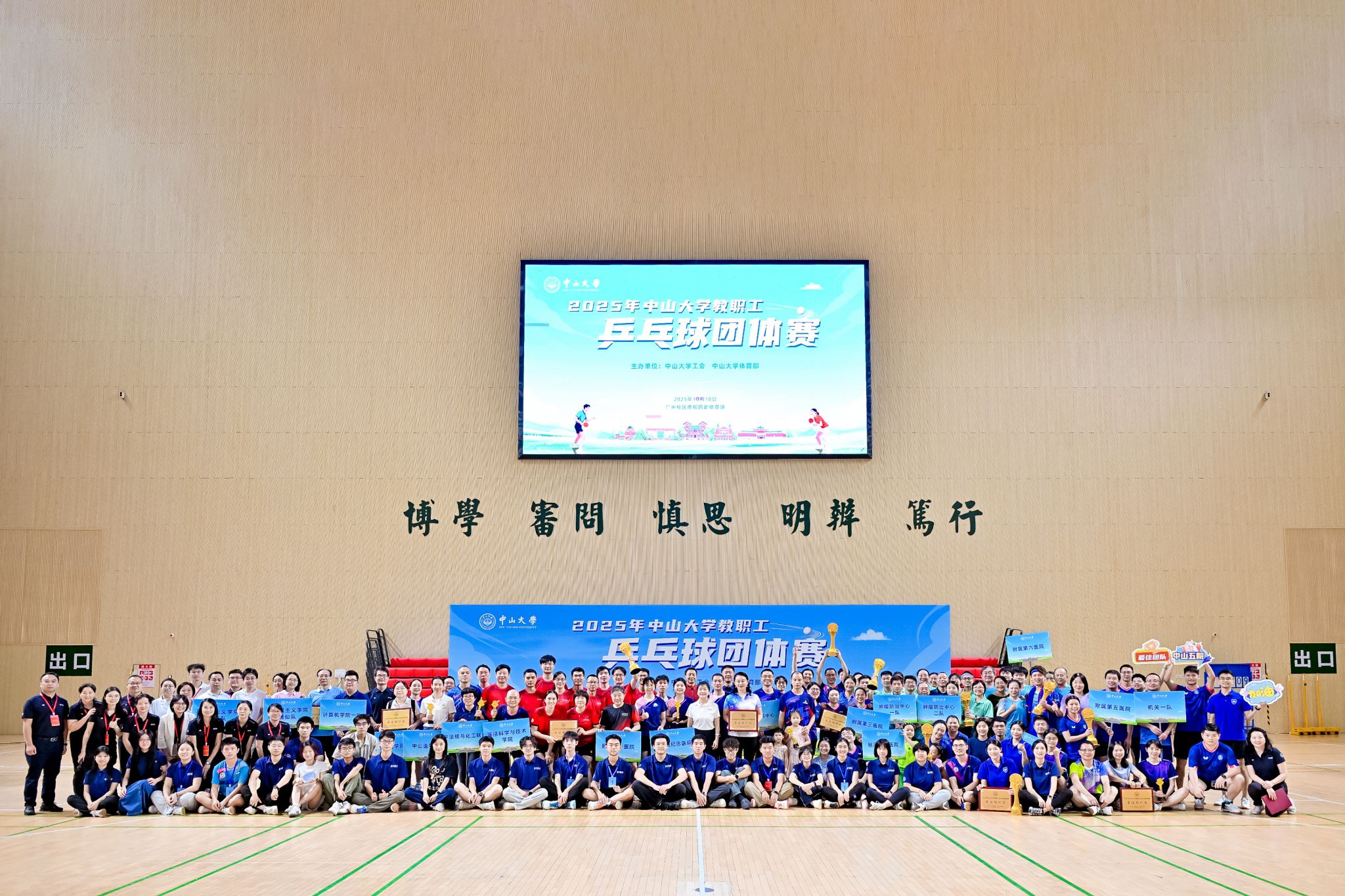 赛场上,选手们个个精神抖擞、斗志昂扬,快攻、削球、弧圈等多种打法竞相上演,精彩对攻与关键分搏杀场面不断,他们精湛的球技、默契的配合、顽强的拼搏精神赢得了在场观众的阵阵掌声和喝彩声。经过上午小组循环赛和下午淘汰赛、八强赛的激烈比拼,附属第七医院、医学院联队夺得团体赛冠军,附属第三医院、附属第一医院分获第二、三名,肿瘤防治中心一队、附属第八医院、附属第五医院、附属第六医院、肿瘤防治中心二队等队伍获前八名,多个单位获团体赛优秀奖与最佳组织奖。