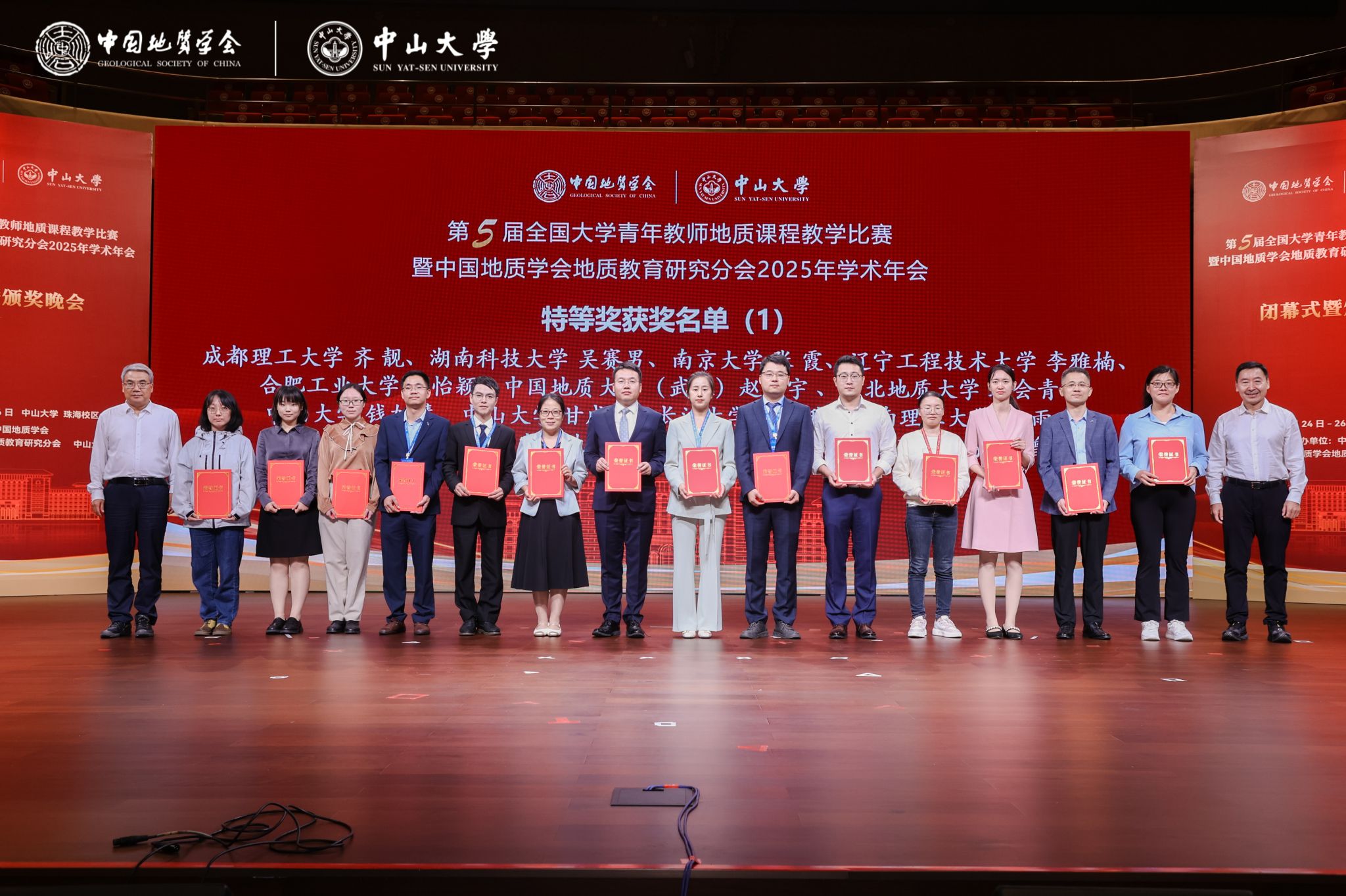 地球科学与工程学院甘成势副教授(左五)、钱加慧副教授(左六)获特等奖