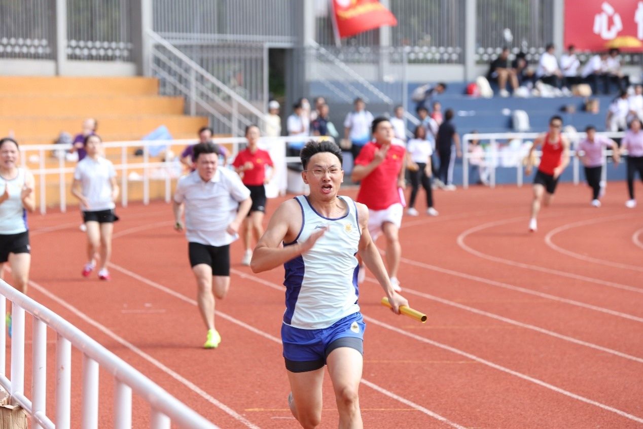 赛场瞬间化作竞技舞台。短跑选手如离弦之箭,长跑选手以奔跑诠释坚持;跳高选手如飞燕掠过横杆,投掷项目引来阵阵喝彩。教职工们也投身赛场,展现出文武兼备的别样风采。