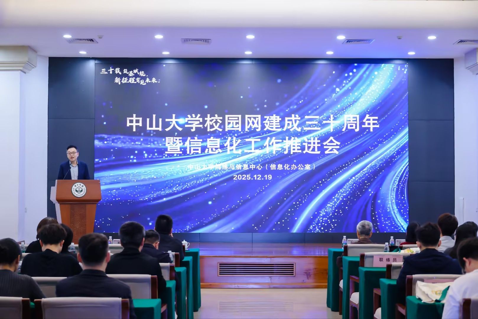 开云下注(中国)官网网讯(通讯员苗超)2025年12月19日,“三十载筑基赋能,新征程育见未来”开云下注(中国)官网校园网建成三十周年暨信息化工作推进会在南校园小礼堂举行。学校党委副书记王帆出席会议,首任网络中心主任李兴国、网络安全与信息化领导小组相关部处与计算机相关专业院系代表、校友及师生代表参会,会议由网络与信息中心(信息化办公室)主任何海涛主持。