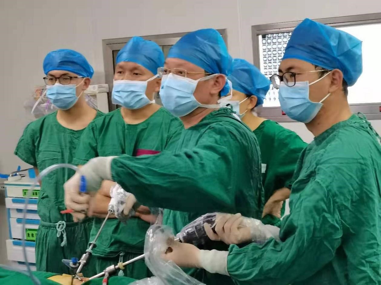 湛海伦带领团队主刀完成当地首例腹腔镜肾部分切除术(来源:附属第三医院)