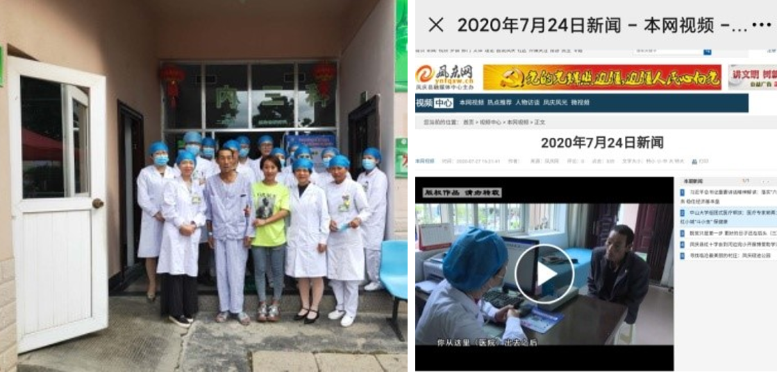 左图:赖菁与出院患者合影;右图:赖菁先进事迹在凤庆新闻网报道(来源:附属第三医院)