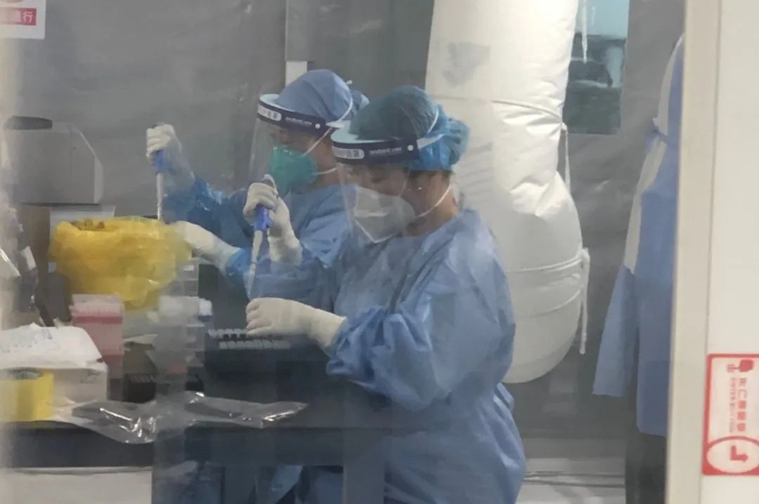 队员们的工作时间大多是在晚上,这是因为白天进行核酸采样后,大部分标本是在下午和晚上转运到实验室,连续8小时的工作结束后已是次日清晨。在长时间的工作中,队员们防护服内的衣服被汗水浸湿,脸上被N95防护口罩印出深深的压痕,拧盖的手指也发酸麻木,但大家丝毫不松懈,在与病毒赛跑的过程中全力以赴。