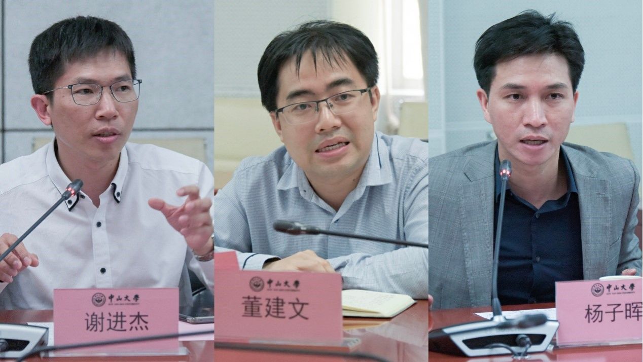 法学院谢进杰教授(左)、物理学院董建文教授(中)、岭南学院杨子晖教授(右)发言