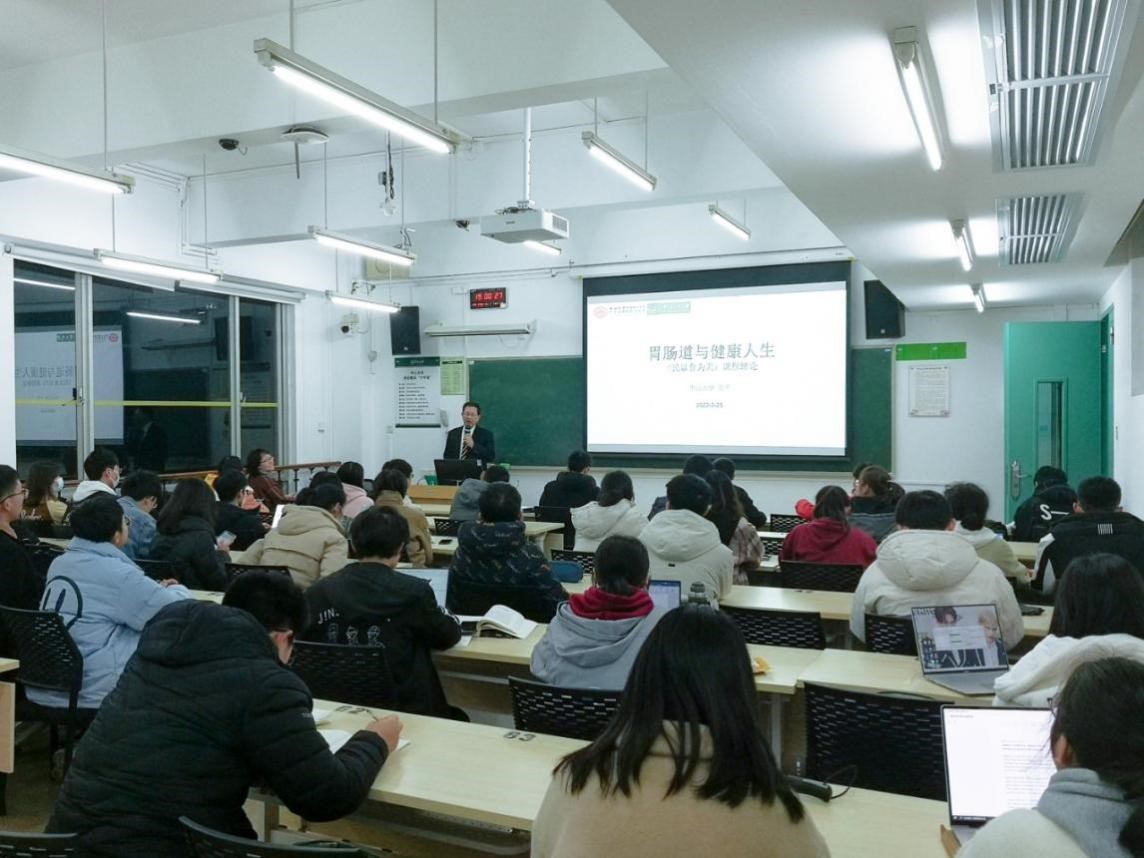 开云下注(中国)官网网广州3月14日电(通讯员郅敏、刘涛、李森茂)近日,我校副校长、附属第六医院胃肠外科首席专家兰平教授深入文理医融合通识教学一线课堂,为涵盖本科一至三年级的跨院系、不同专业背景学生,讲授了一堂深入浅出、丰富有趣的通识课——《胃肠道与健康人生》,这也是我校公选通识课《胃肠疾病与健康》的开课绪论。