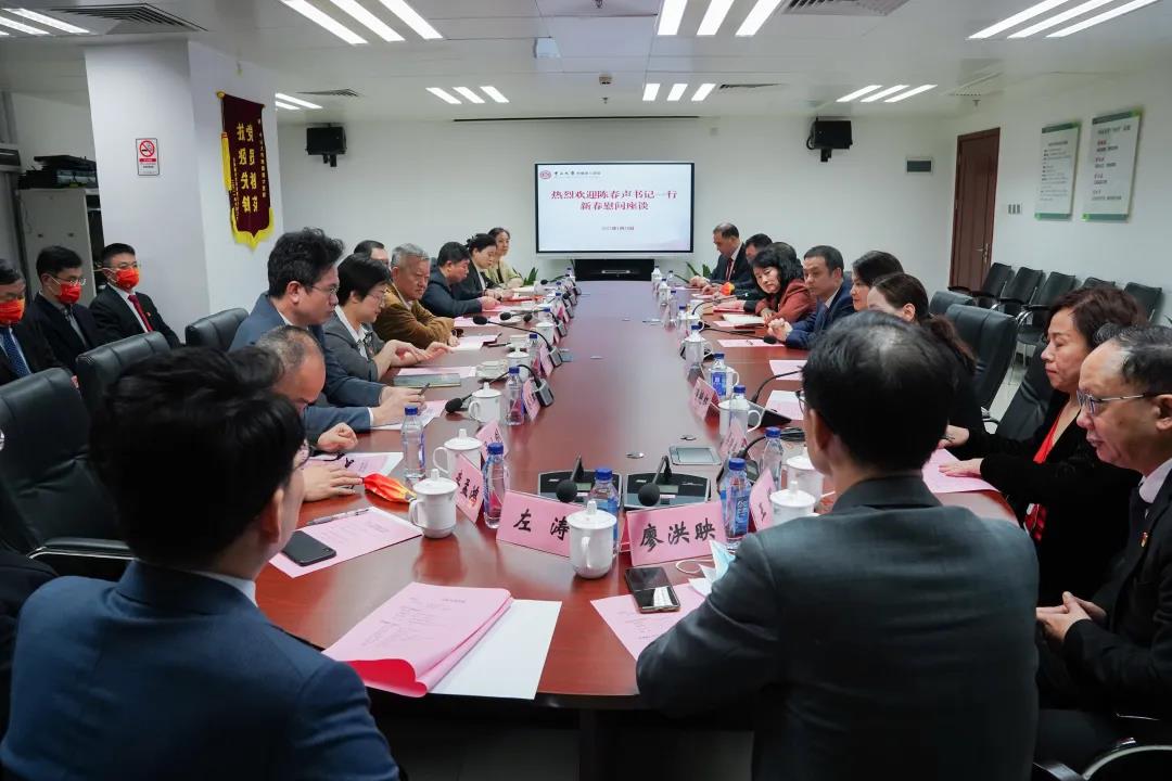 慰问期间,陈春声书记和高松校长还分别在各医院召开新春慰问座谈会。10家附属医院领导班子、业务骨干、高层次人才代表、抗疫先锋代表、对口帮扶支援代表、行政职能部门代表等出席座谈会。