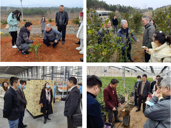 2021年底,学院骨干教师会同在华南农业大学从事智慧农业的专家校友,以及丰农控股、武大绿洲等知名涉农企业的领导、专家,前往湖南宜章县深入调研、开展服务。专家们深入田间地头、车间场点,为跨界承包荒山种植柑橘的青年企业家、农场主现场指导栽植、管理技术要点,并为他们指定专家提供长期技术指导;与当地领导、农技服务站人员座谈,提供义务科普培训,优惠推广生物肥料,探讨联合申报科研项目,推进地方果树病虫害绿色防控和智能化管理。
