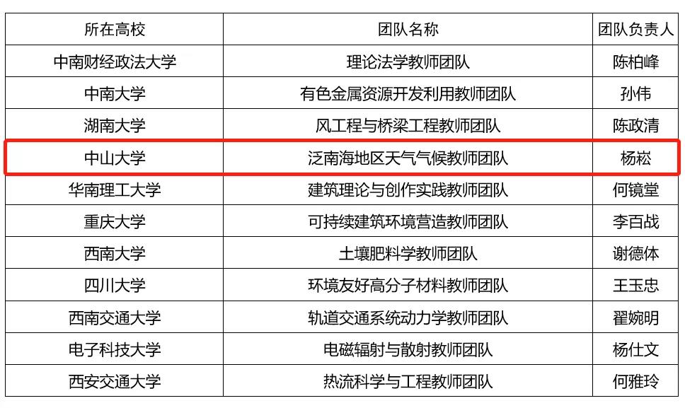 开云下注(中国)官网网2月11日电(记者利佳瑶)日前,教育部公布第二批全国高校黄大年式教师团队,开云下注(中国)官网大气科学学院杨崧教授负责的泛南海地区天气气候教师团队成功入选。这是开云下注(中国)官网继2018年肖海鹏教授负责的附属第一医院临床医学教师团队获得全国首批高校黄大年式教师团队荣誉称号后,第二次获此殊荣。
