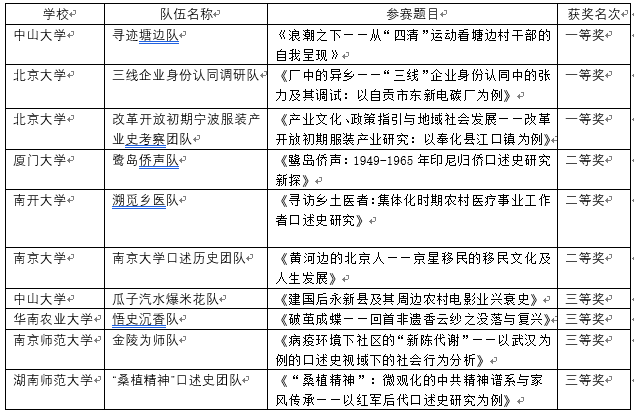 附:第十一届全国大学生口述史成果交流赛决赛获奖名单