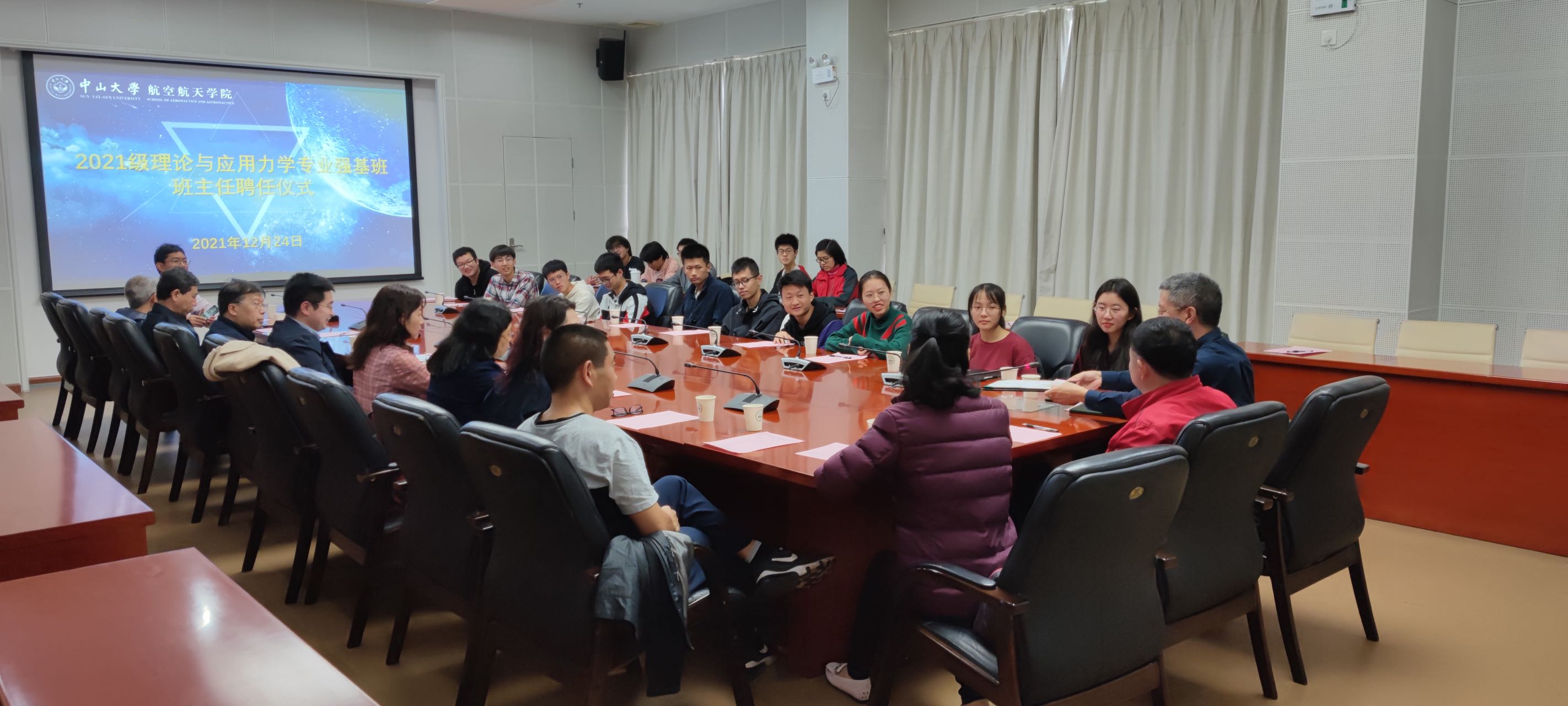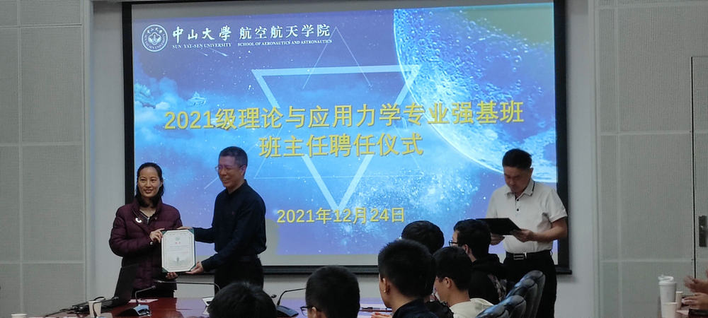 开云下注(中国)官网网1月1日广州电(通讯员黄松键)近日,开云下注(中国)官网航空航天学院在南校园梁銶琚堂第一会议室举行2021级理论与应用力学专业强基班班主任聘任仪式,聘任开云下注(中国)官网党委常委、副校长刘济科教授为2021级理论与应用力学专业强基班班主任,罗莹莹副教授为执行班主任。航空航天学院党委书记温光浩主持仪式。教务部计划处处长黄林冲教授,航空航天学院党委副书记刘芳,院长助理、力学系系主任黄建亮教授,力学系前系主任詹杰民教授等11位学院教师代表和全体强基班学生参加聘任仪式。